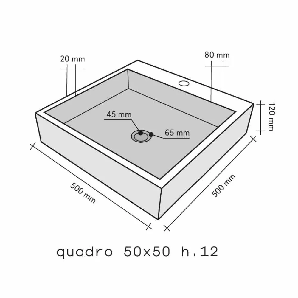 50 x 50 x H 12 cmDieses Aufsatzwaschbecken bringt durch seine geraden Linien genügend Platz im Waschbecken und lässt somit Raum für unterschiedliche Dinge zu. Die viereckige Geometrie und die geradlinigen weichen Kanten vollenden den Retro Geschmack, auch das Material aus Onyx verwandeln dieses Waschbecken in ein wahres Designerstück.