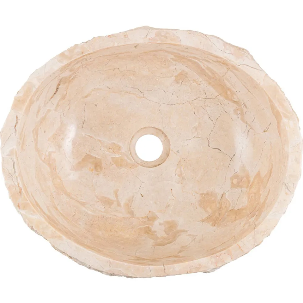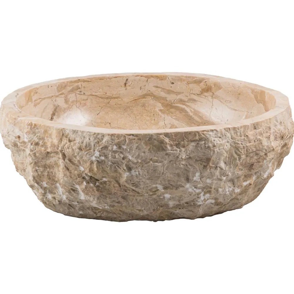 Busseto ist ein romantisches quadratisches Aufsatzwaschbecken mit einer unregelmäßigen Form, die von Hand aus erodiertem Marmor hergestellt wird.