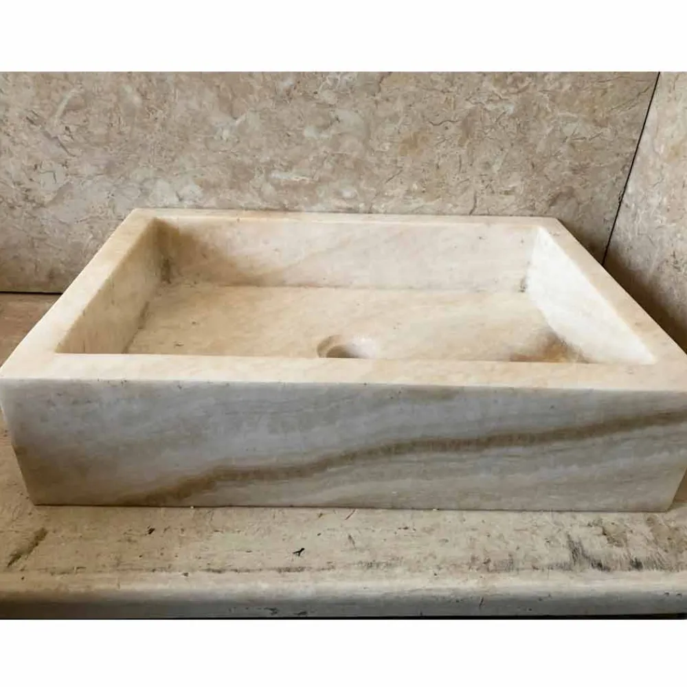 Alle Produkte dieser Kollektion werden aus Materialien wie Marmor, Onyx, Vulkansteinen und Flusssteinen gefertigt.
