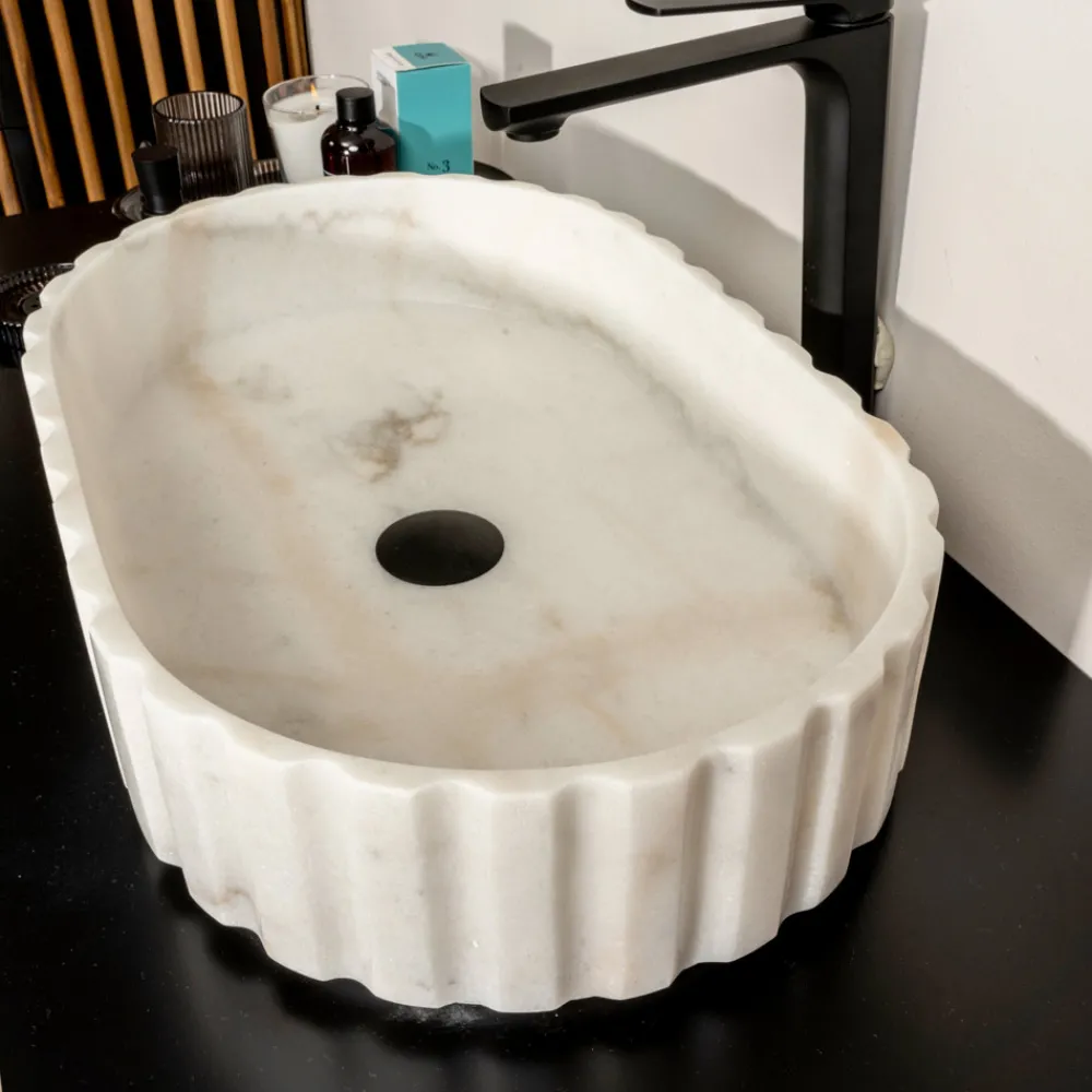 Aufsatzwaschbecken aus weißem Marmor