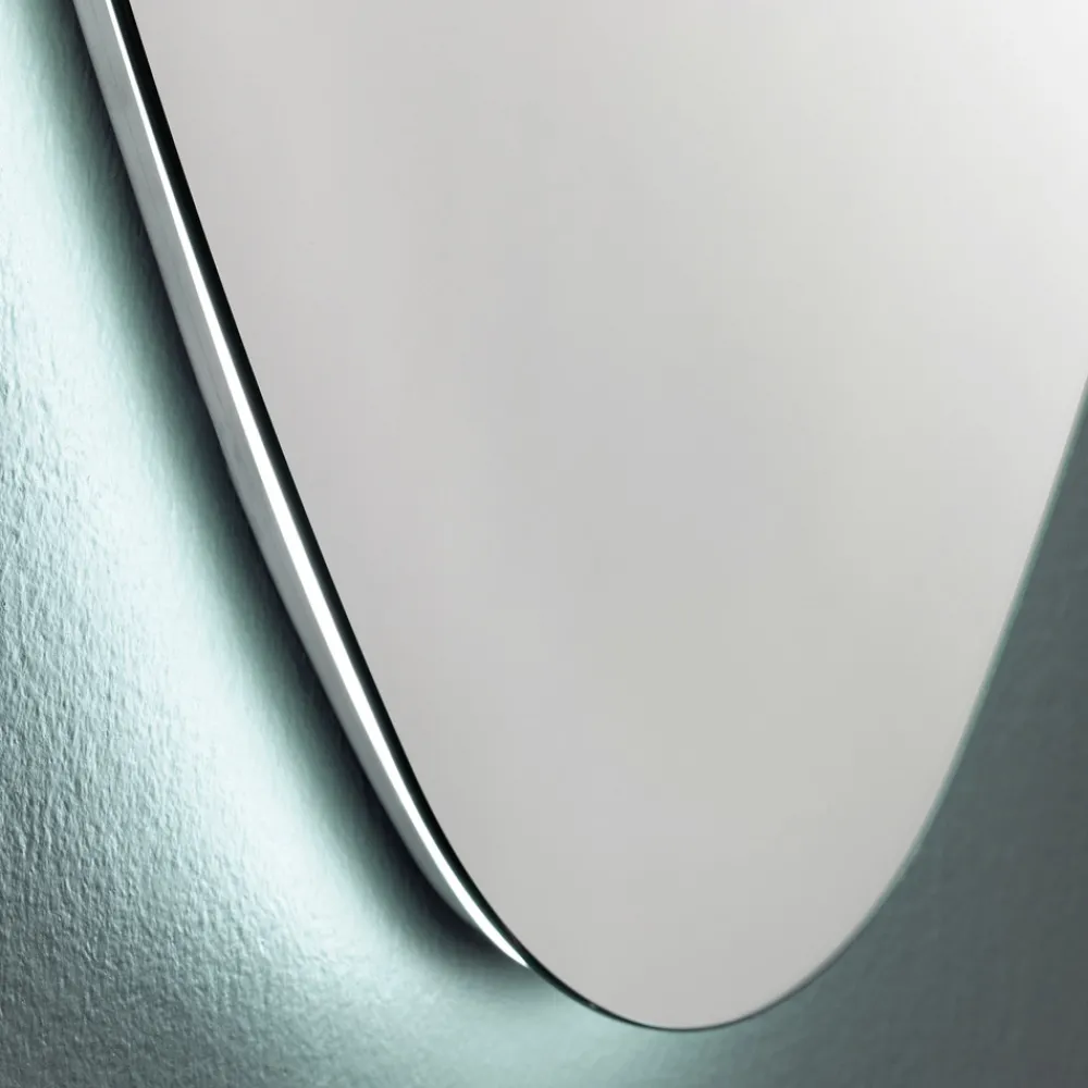 Polierter Wand-Badezimmerspiegel mit LED-Hintergrundbeleuchtung, hohe Qualität made in Italy.
