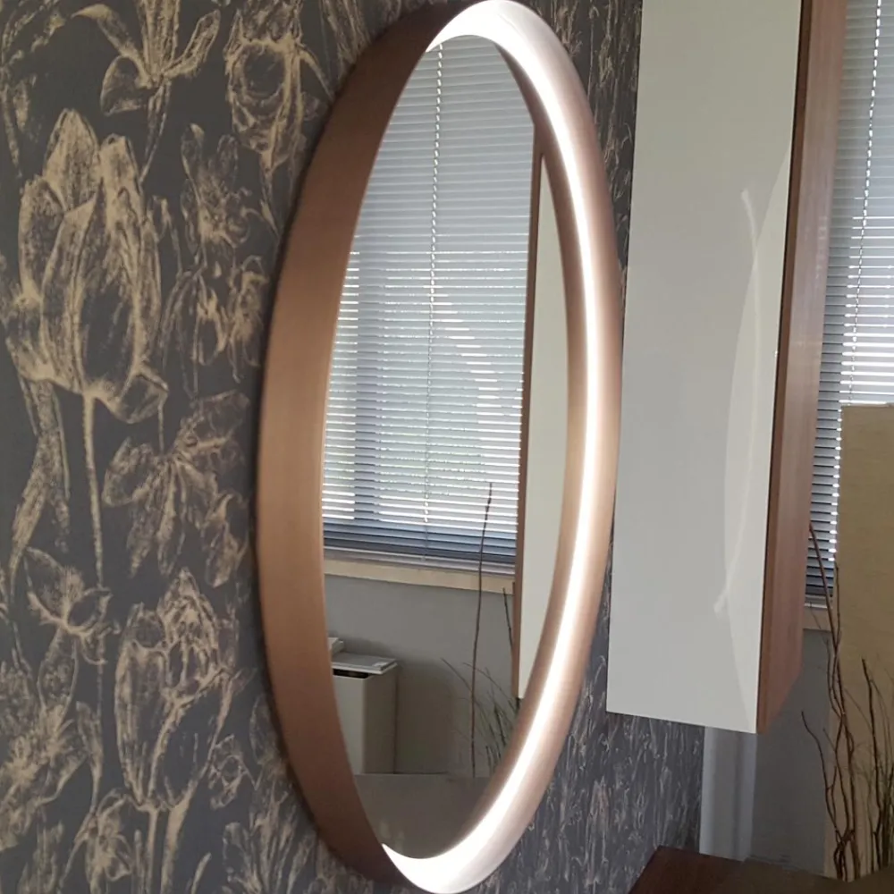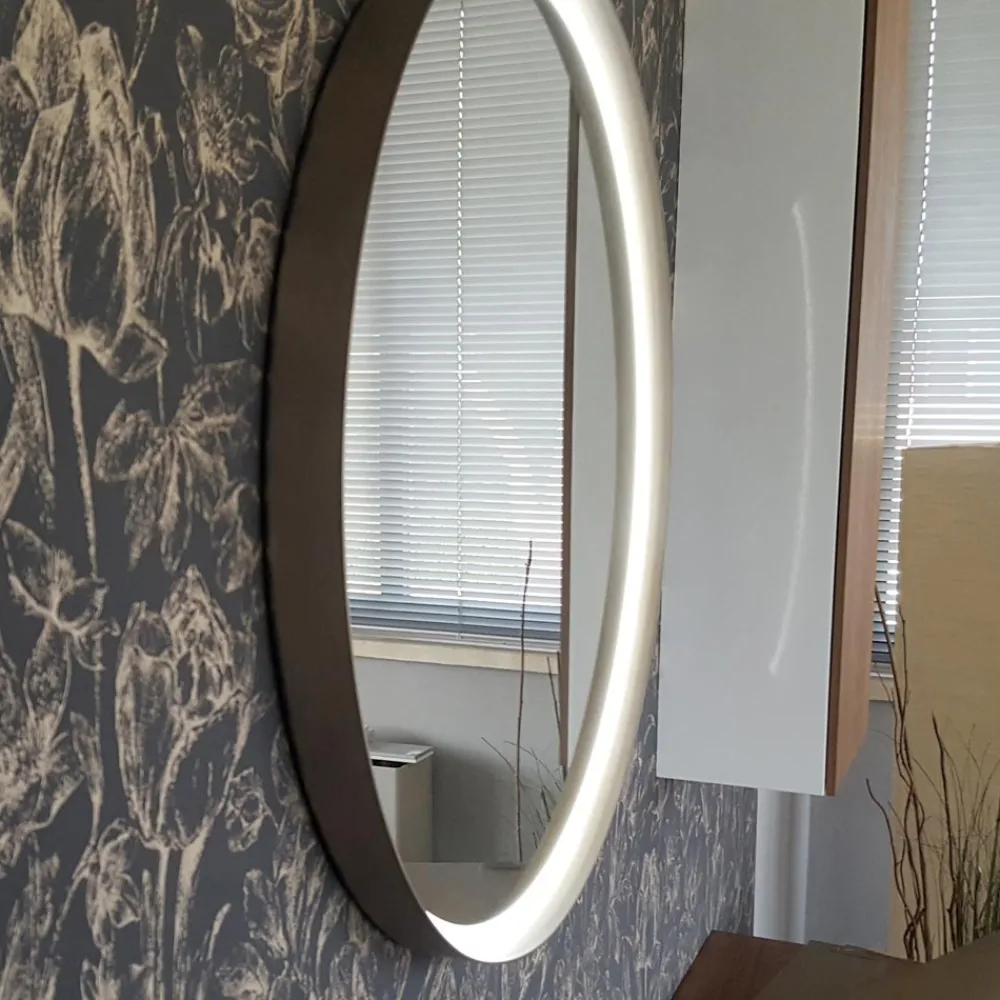 Runder Wandspiegel mit Metallrahmen in 4 Ausführungen und LED-Licht, hergestellt in Italien.
