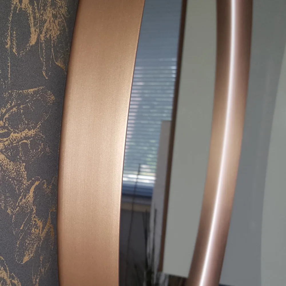 Dieser runde Wandspiegel besticht durch sein edles Design mit einem Metallrahmen in vier Ausführungen mit einer Stärke von 5 cm.