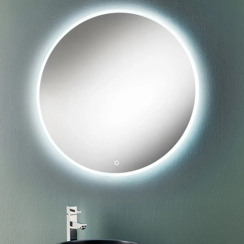 Die Besonderheit dieses runden Wandspiegels besteht in der LED-Hintergrundbeleuchtung mit integriertem Berührungssensorschalter, die das moderne und originelle Design der Ergänzung vervollständigt, die sich durch eine elegante und raffinierte sandgestrahlte Kante auszeichnet. Die integrierte 4000K-LED-Beleuchtung breitet sich von den Rändern aus aus und hat eine Doppelfunktion: als Umgebungsbeleuchtung oder als direkte Beleuchtung des Spülbeckenbereichs.