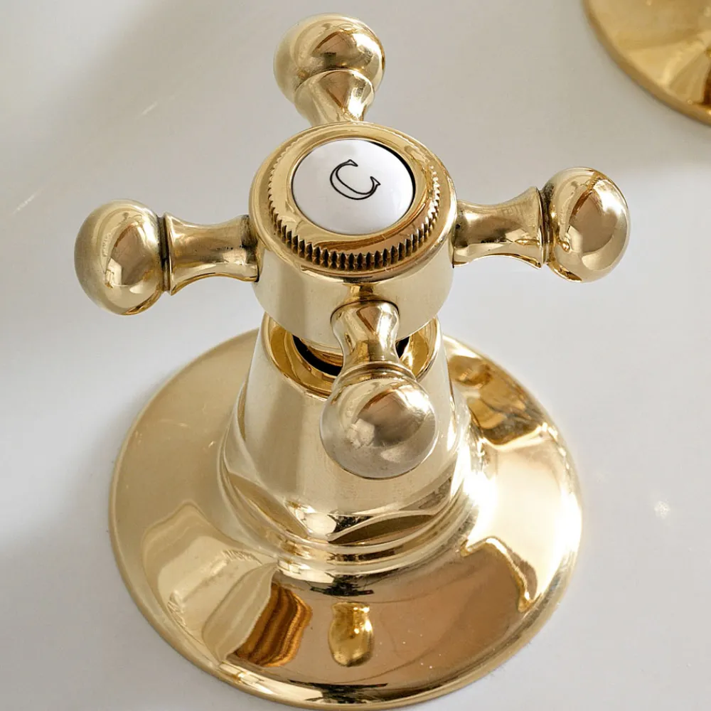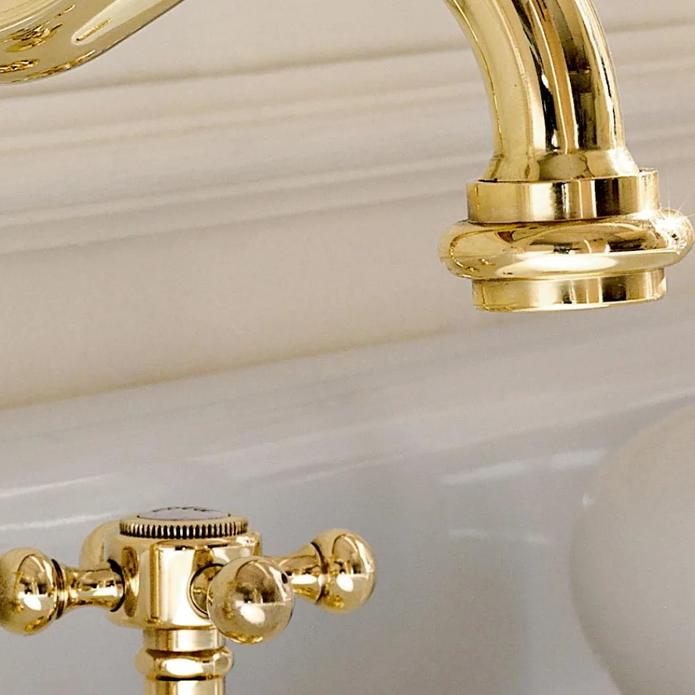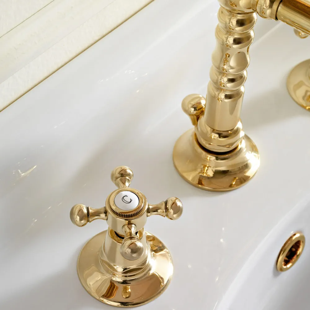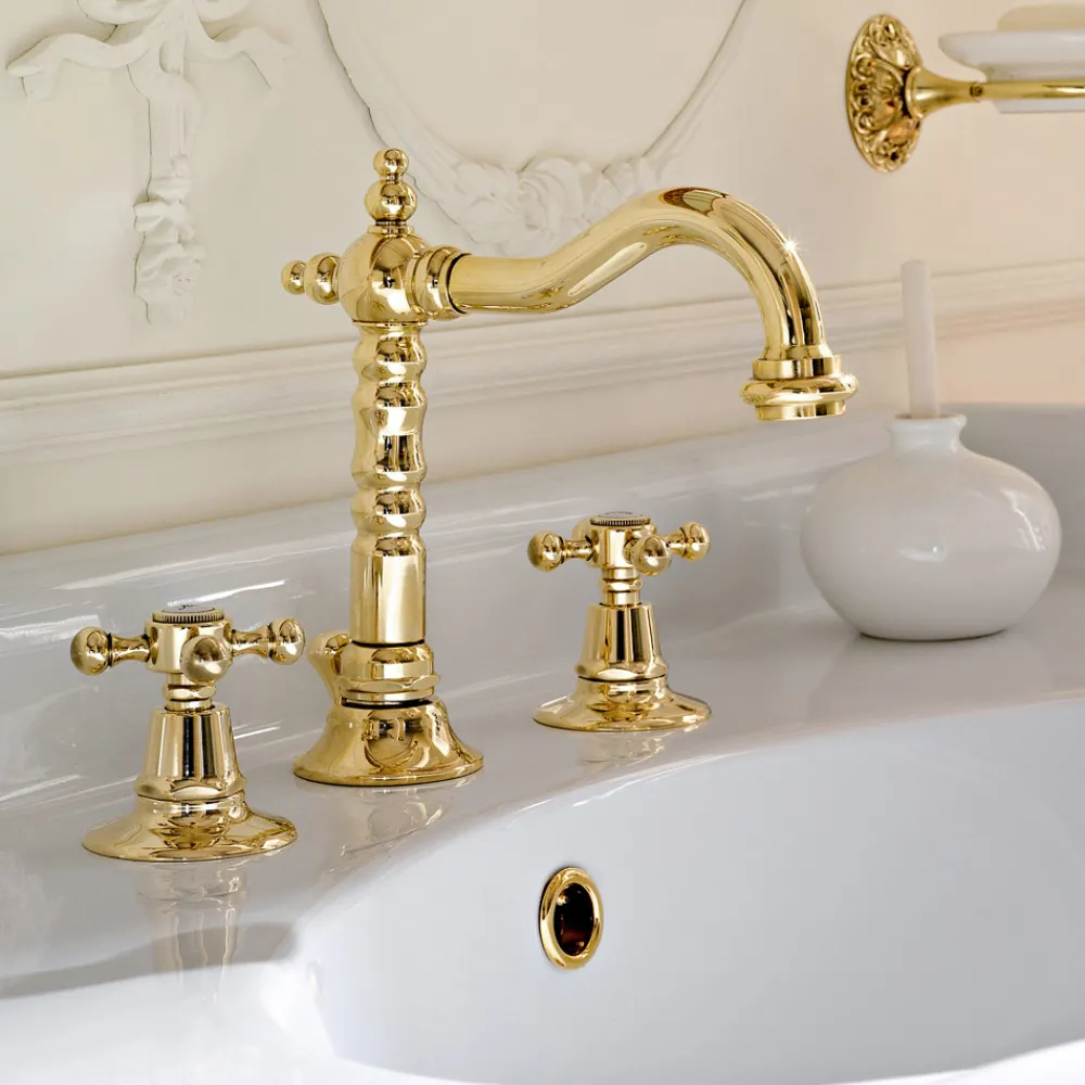 3-Loch-Designer-Waschtischarmatur Ursula aus Messing, hergestellt in Italien.