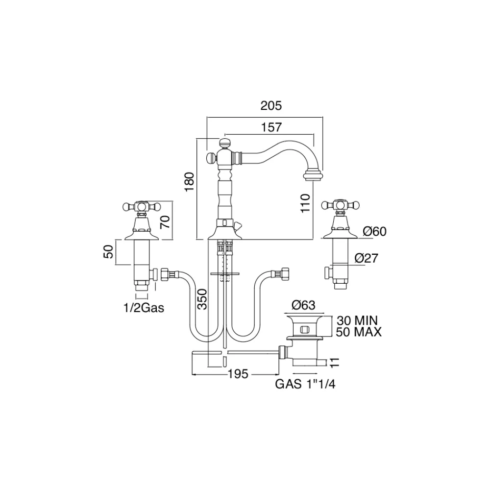 Ursula è anè 3-Loch-Waschtischarmatur mit Ablauf, aus Messing.