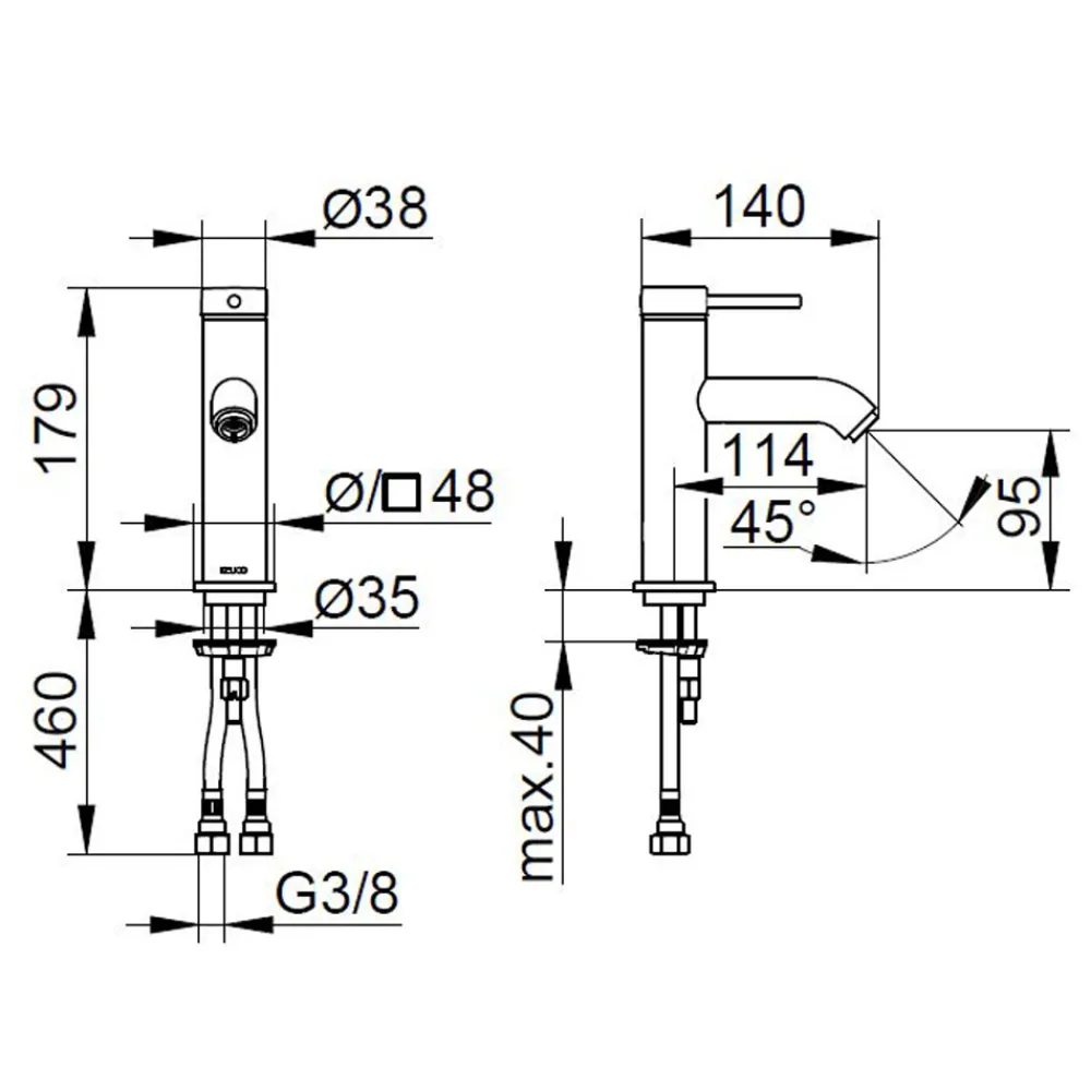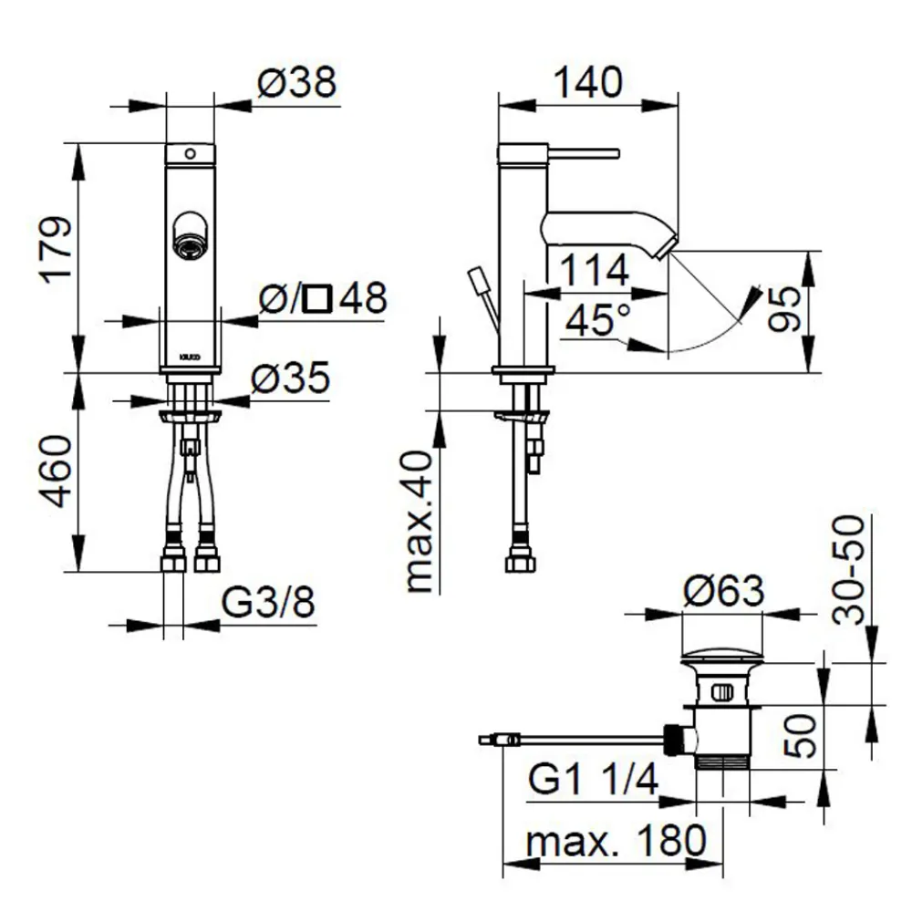- Luftsprudler M 20×1, Druckrohre 570 mm, G 3/8 Zoll;
