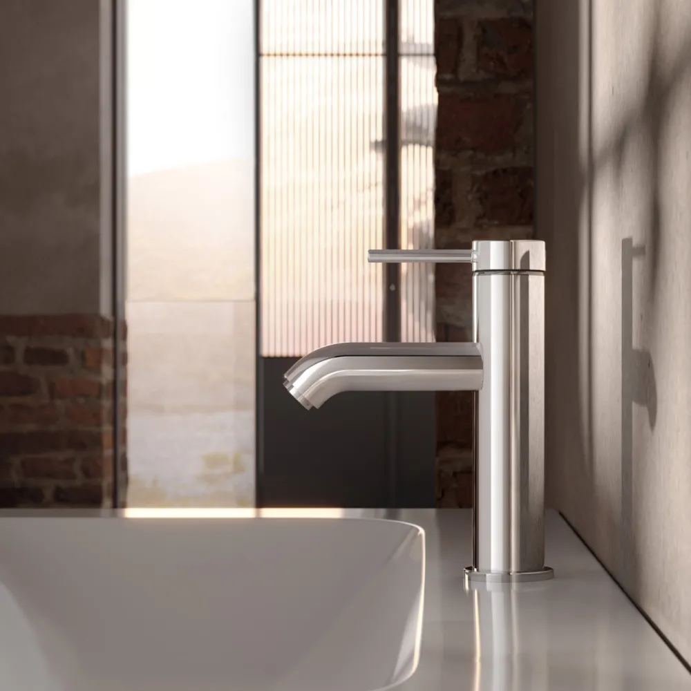 Dieser Einhebel-Waschtischmischer hat ein Design mit perfekter Synchronität zwischen Griff und Auslauf.