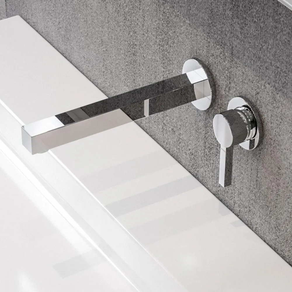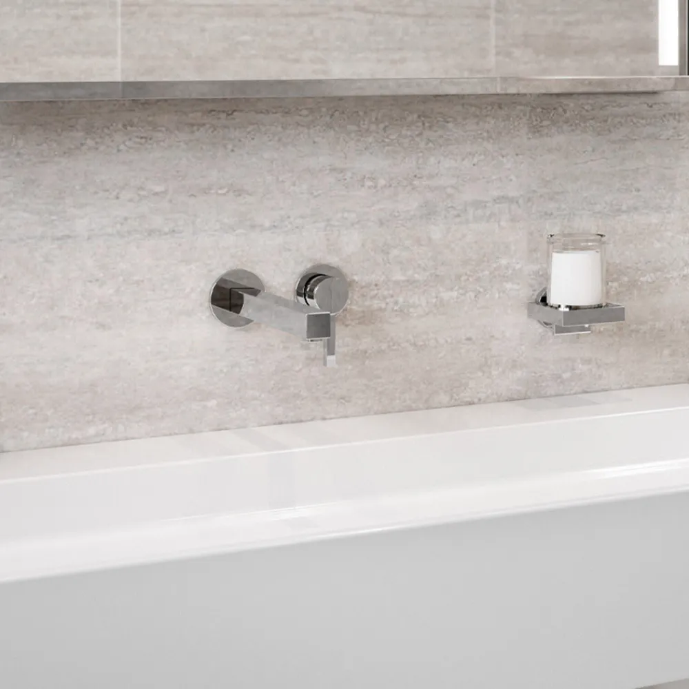 Einhebel-Waschtischmischer im quadratischen Design für die Wandmontage.