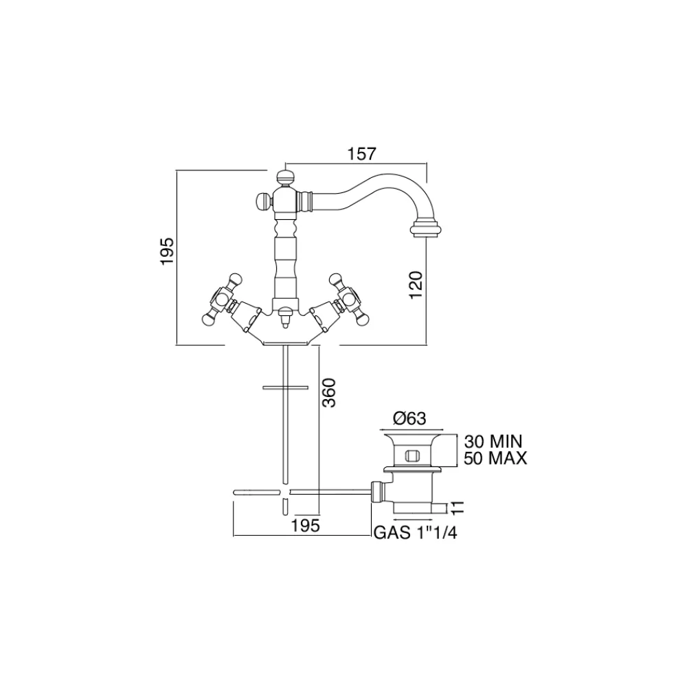 Einloch-Waschtischbatterie im Vintage-Design aus Messing Ursula, hergestellt in Italien.