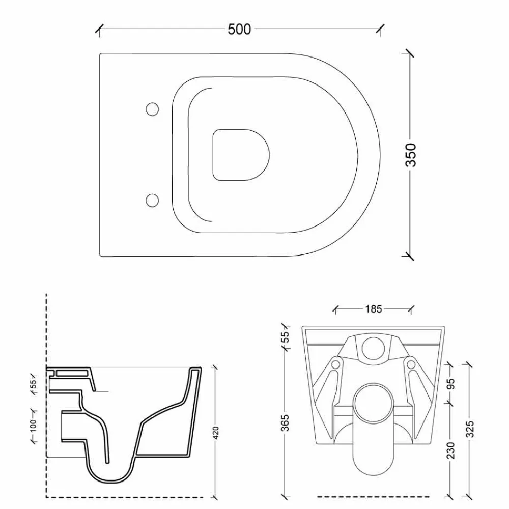 Hängendes Keramikgefäß mit Schnellbefestigungsset und Befestigungsklammern im Lieferumfang enthalten.