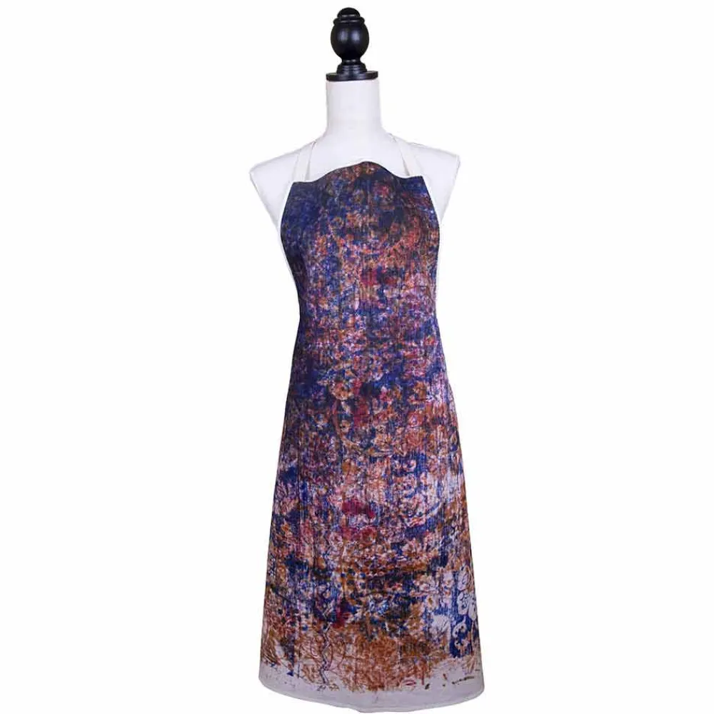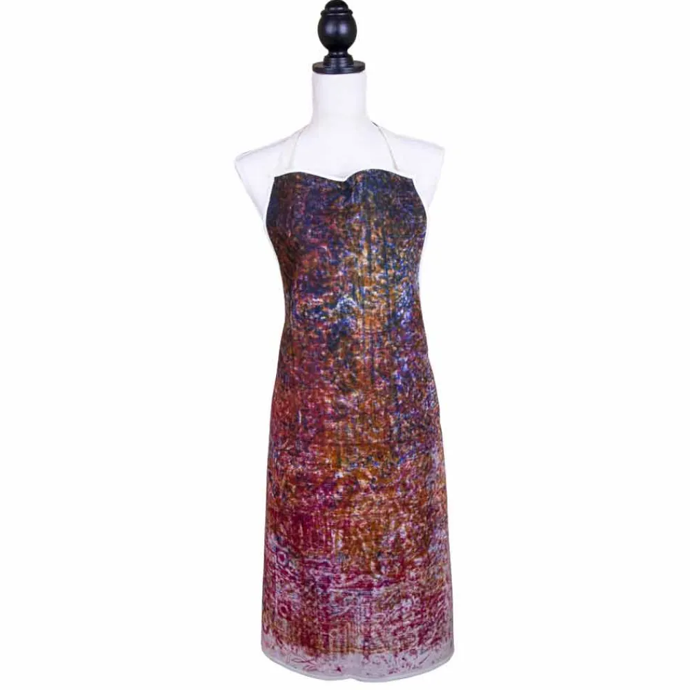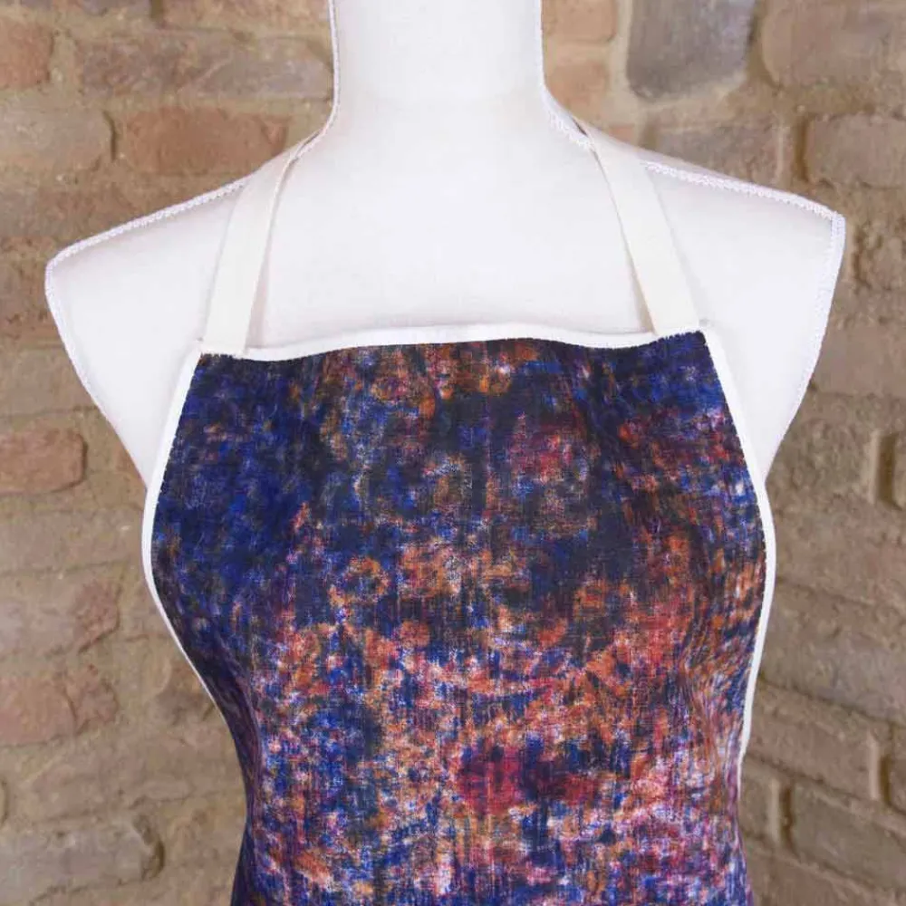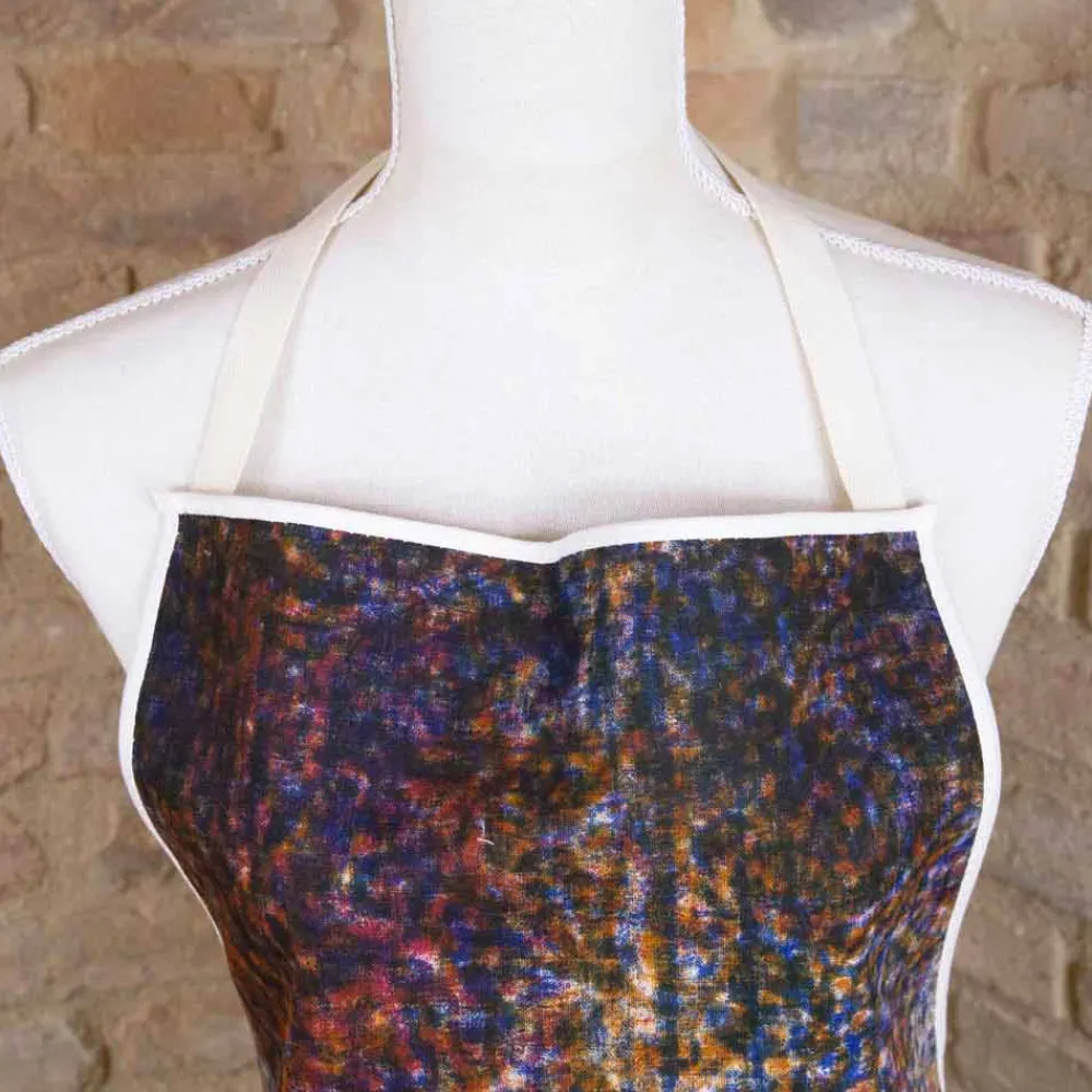 Künstlerische Küchenschürze mit Lätzchen aus reiner Baumwolle, handgefertigt mit farbigen Motiven, einzigartiges Stück Qualität made in Italy.