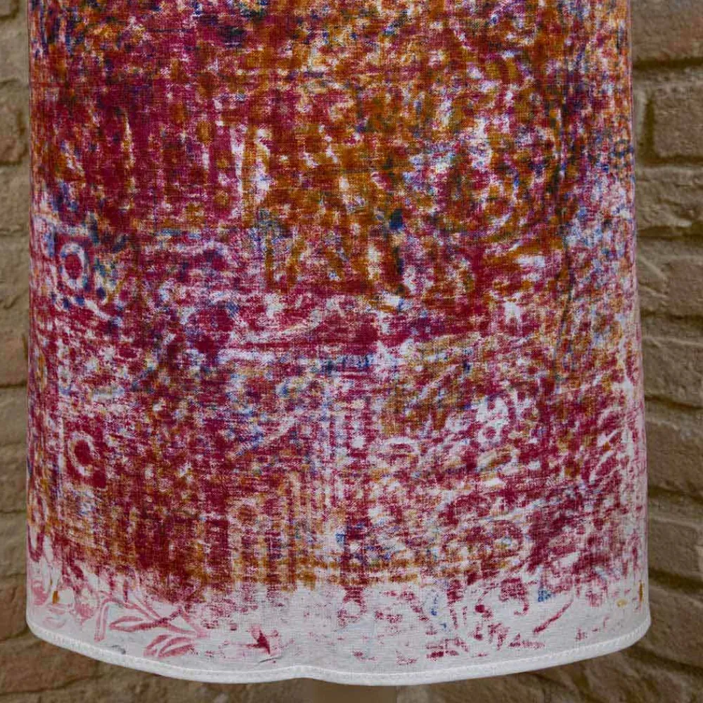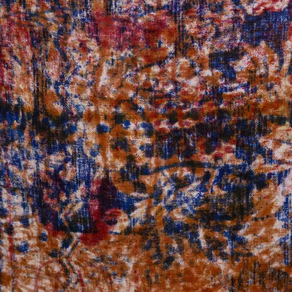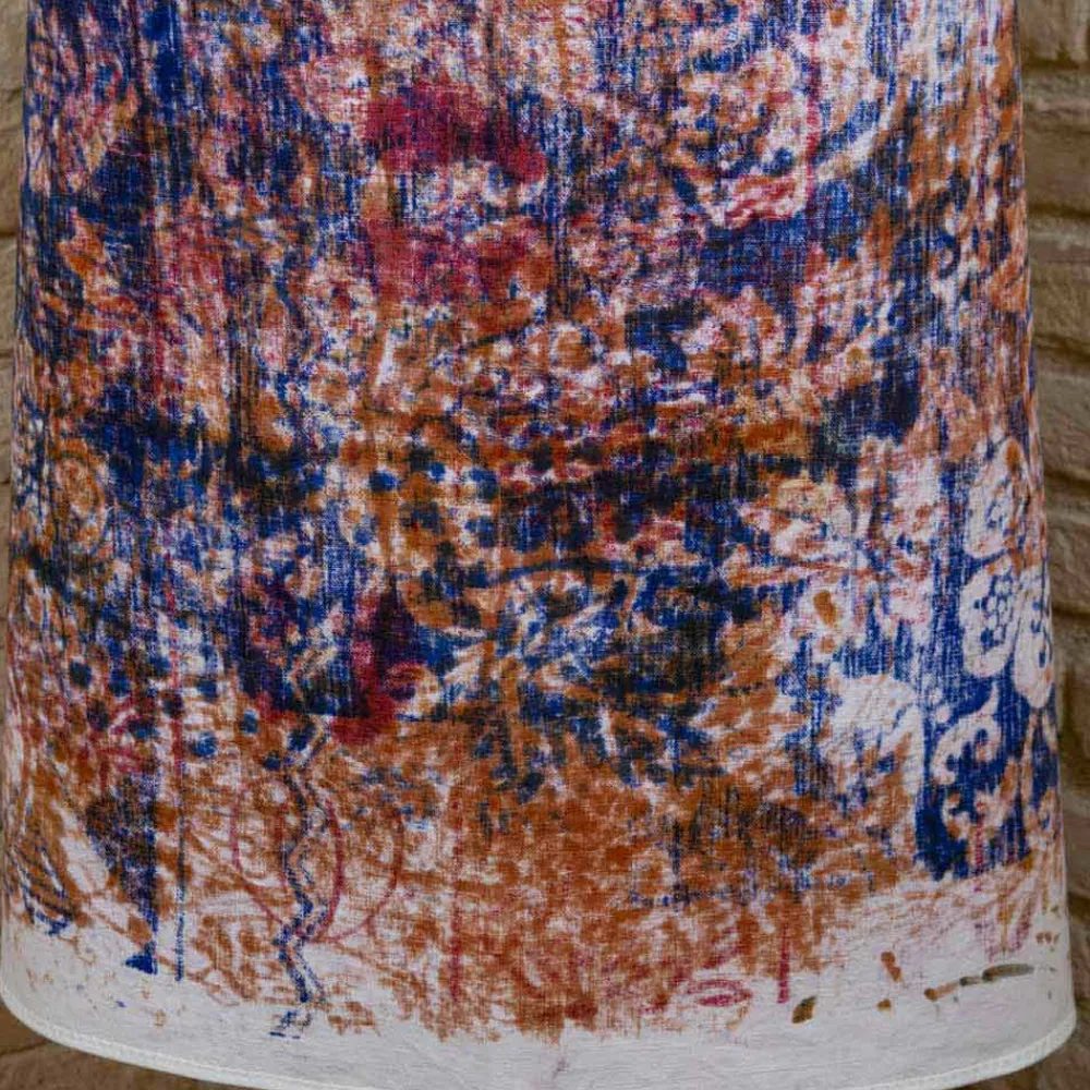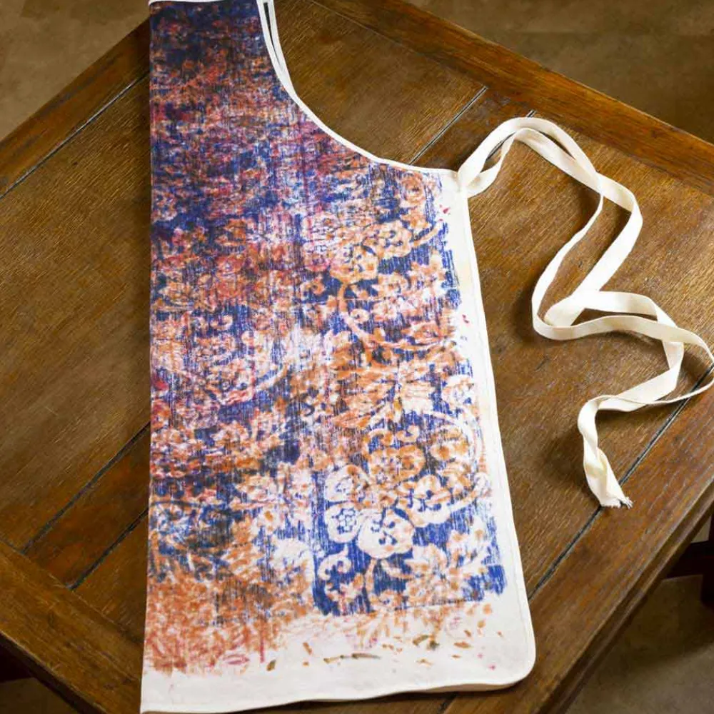 - Handabdruck : Diese Phase dauert Monate. Der Stoff wird auf die Werkbank unter den verschiedenen Artikeln gelegt, die sich in Monaten und Monaten der Arbeit abwechseln und gedruckt werden. Die verschiedenen Farben und Designs werden aufgrund des Drucks der Holzform „spontan“ auf diesen Stoff übertragen und überlappen sich. Das Endergebnis wird eine Explosion unvorhersehbarer und nicht wiederholbarer Farben und Schattierungen sein.