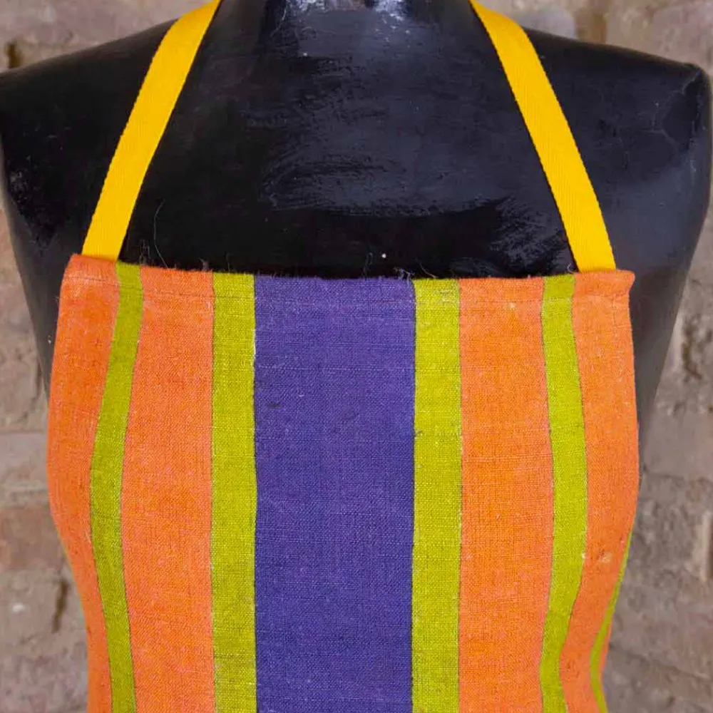 Hoch gearbeitete Küchenschürze mit Lätzchen und Tasche handgefertigt und handbemalt, Unikat aus antikem Canvas mit Qualität und Design made in Italy.
