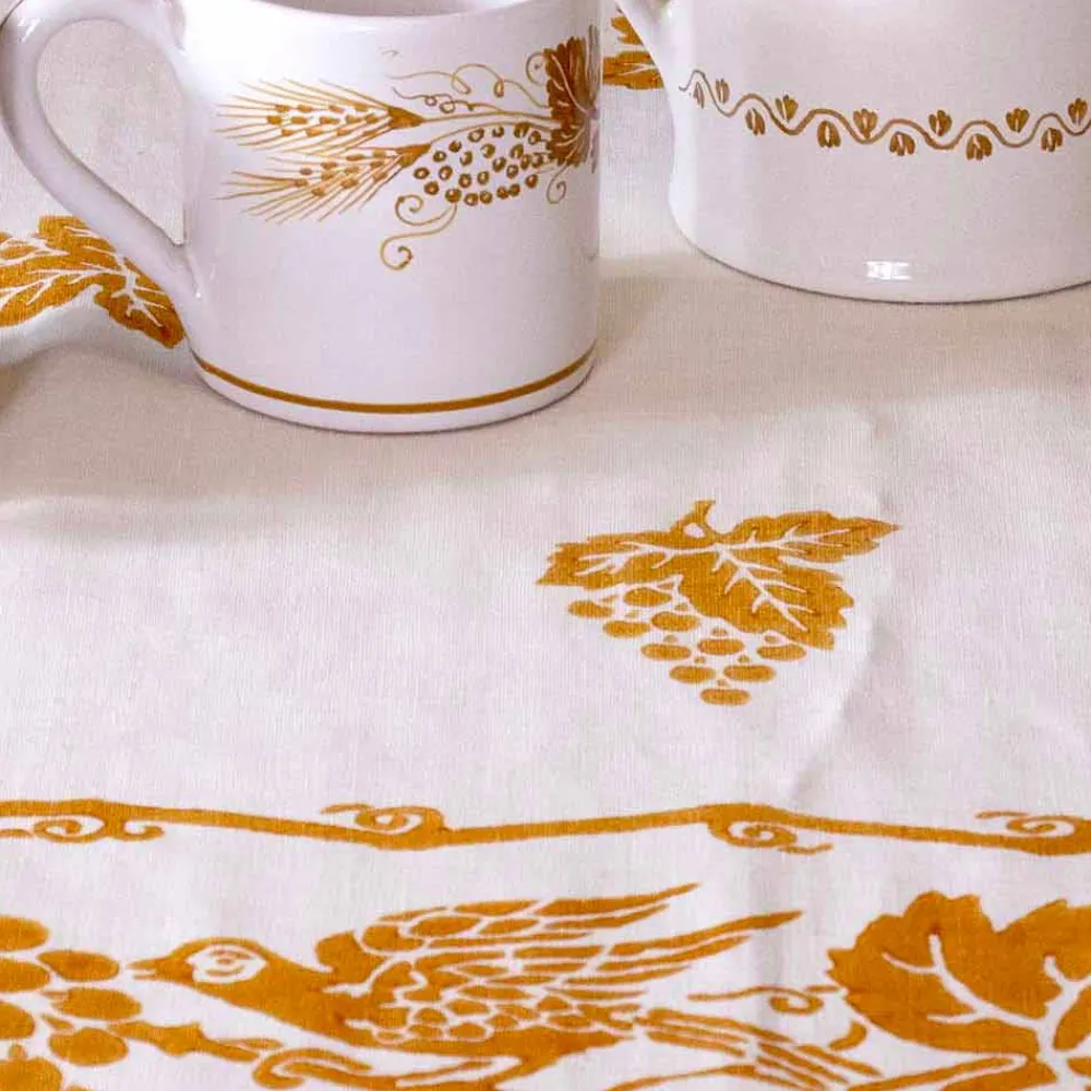 - 3 mögliche Drucke verfügbar: Blau mit altem Granatapfel- Design , ein Symbol für Fülle und Wohlstand; Rost, mit alter traditioneller Zeichnung von Uccellino, die Trauben pickt ; Rust, mit altem Design des malatestianischen Liebesknoten (eine italienischen Adelsfamilie , dass Mark der Geschichte des Territoriums), ein Symbol für ihre unauflösliche Bindung.