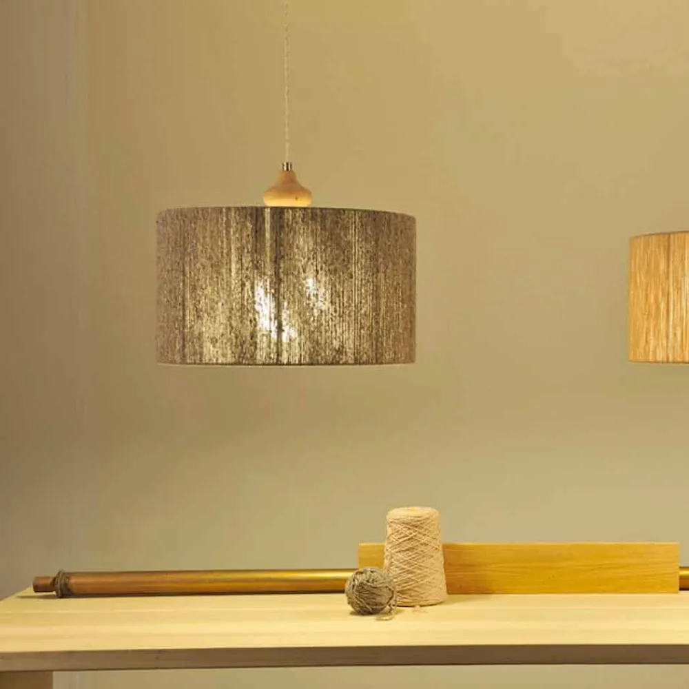 400 cm Kabel aus hellem, geflochtenem Stoff. Lampenschirm aus 100% Wolle ø45 xH26 cm Farbe Tweed