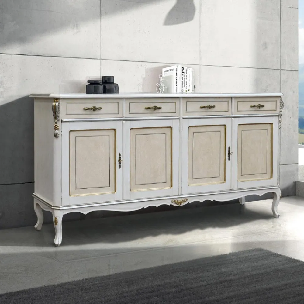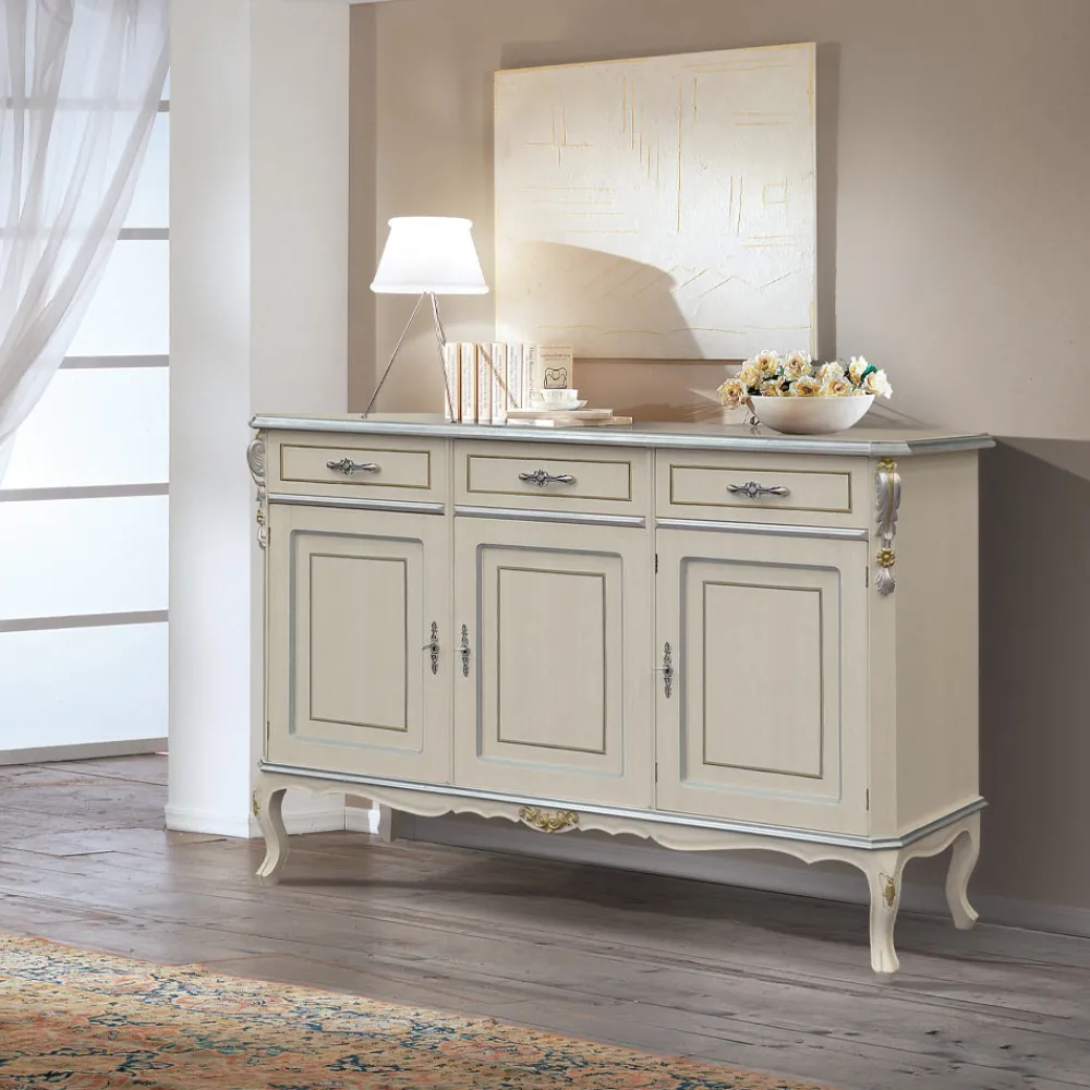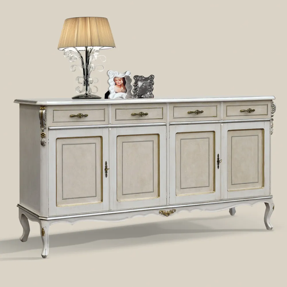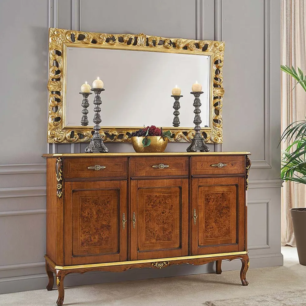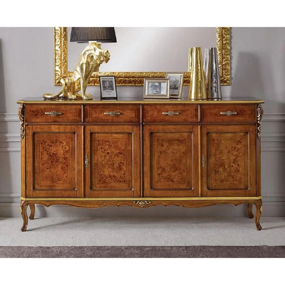 Wohnzimmer-Sideboard aus Edelholz, erhältlich in der Version mit 3 Türen und 3 Schubladen oder 4 Türen und 4 Schubladen, anpassbar an jeden Einrichtungsbedarf. Dieses elegante und zeitlose Sideboard im klassischen Stil ist ideal, um beeindruckende Umgebungen zu schaffen. Vollständig in Italien hergestellt und von erfahrenen Handwerksmeistern handgefertigt, vollendet mit Weisheit und Geschmack für Eleganz. Die Produktion erfolgt unter Verwendung hochwertiger Materialien und mit der größten Sorgfalt und Professionalität, die die Produkte Made in Italy auszeichnet .