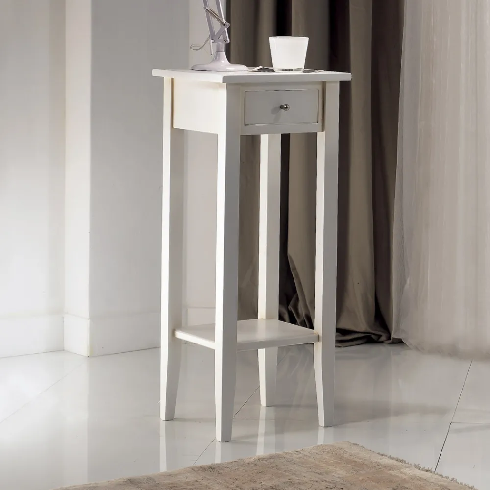 Couchtisch für den Innenbereich mit Struktur aus massivem Pappelholz , Teilen aus Sperrholz und 1 Schublade aus Sperrholz , vollständig in Italien hergestellt.