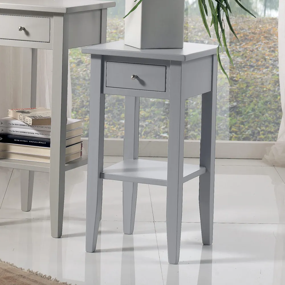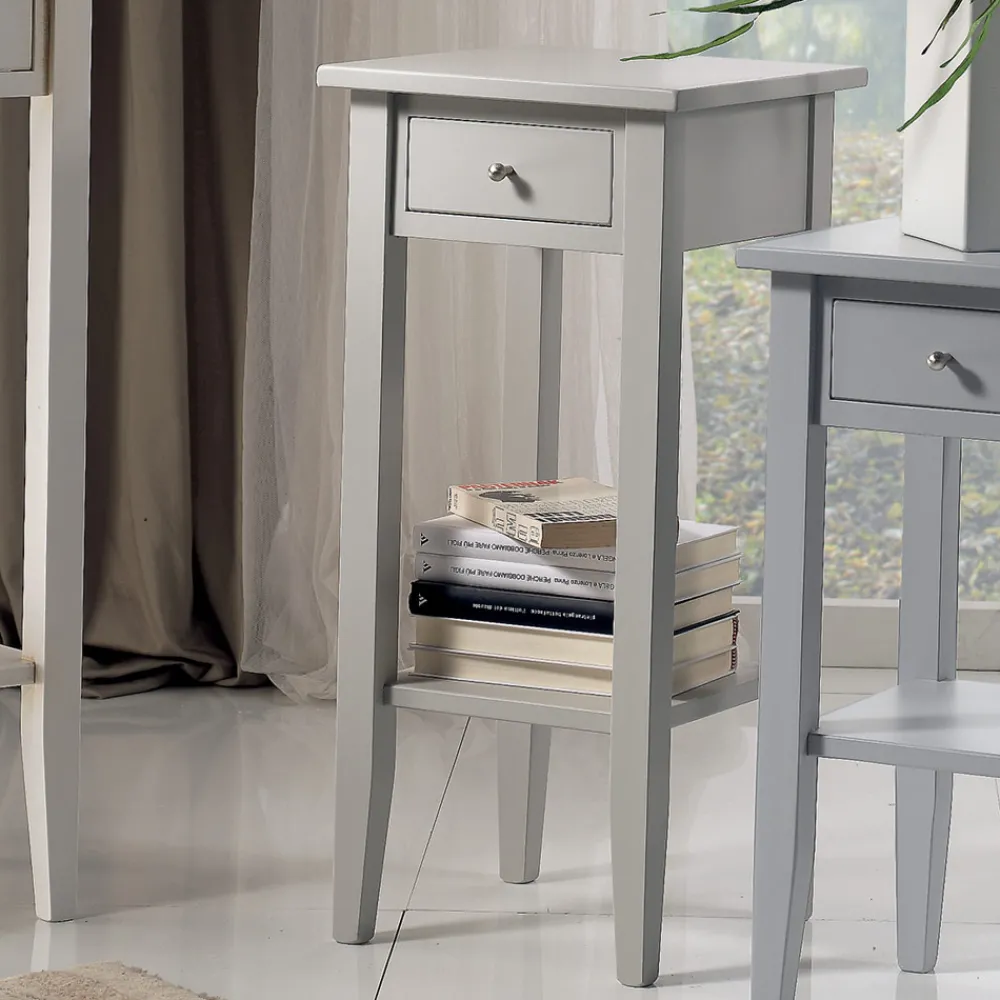 - Länge 32 cm x Tiefe 32 cm x Höhe 60 cm – Grau lackierte Oberfläche