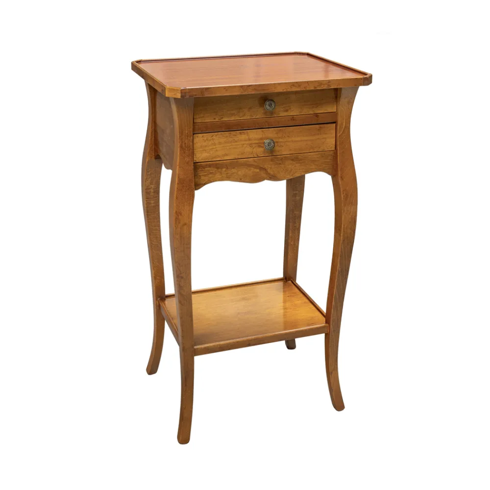 Couchtisch für den Innenbereich mit Beinen aus Buche , Spanplatten aus Tanganjika-Furnierholz , Seiten aus Pappelholz/Holz mit 2 Schubladen und einem Regal, vollständig in Italien hergestellt.