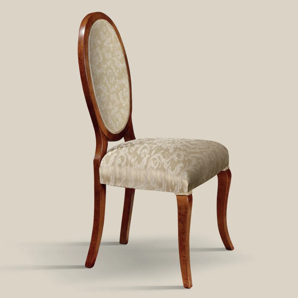 Esszimmerstuhl im klassischen Stil aus Holz und Stoff Made in Italy.