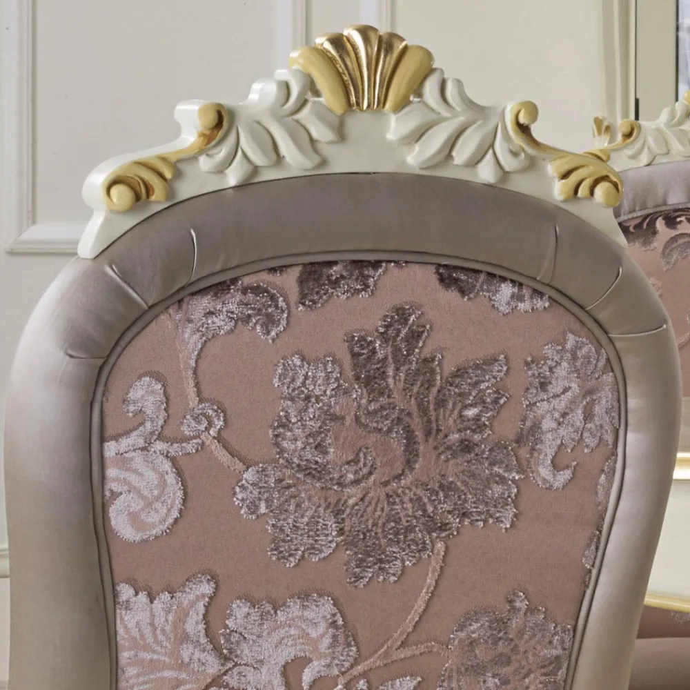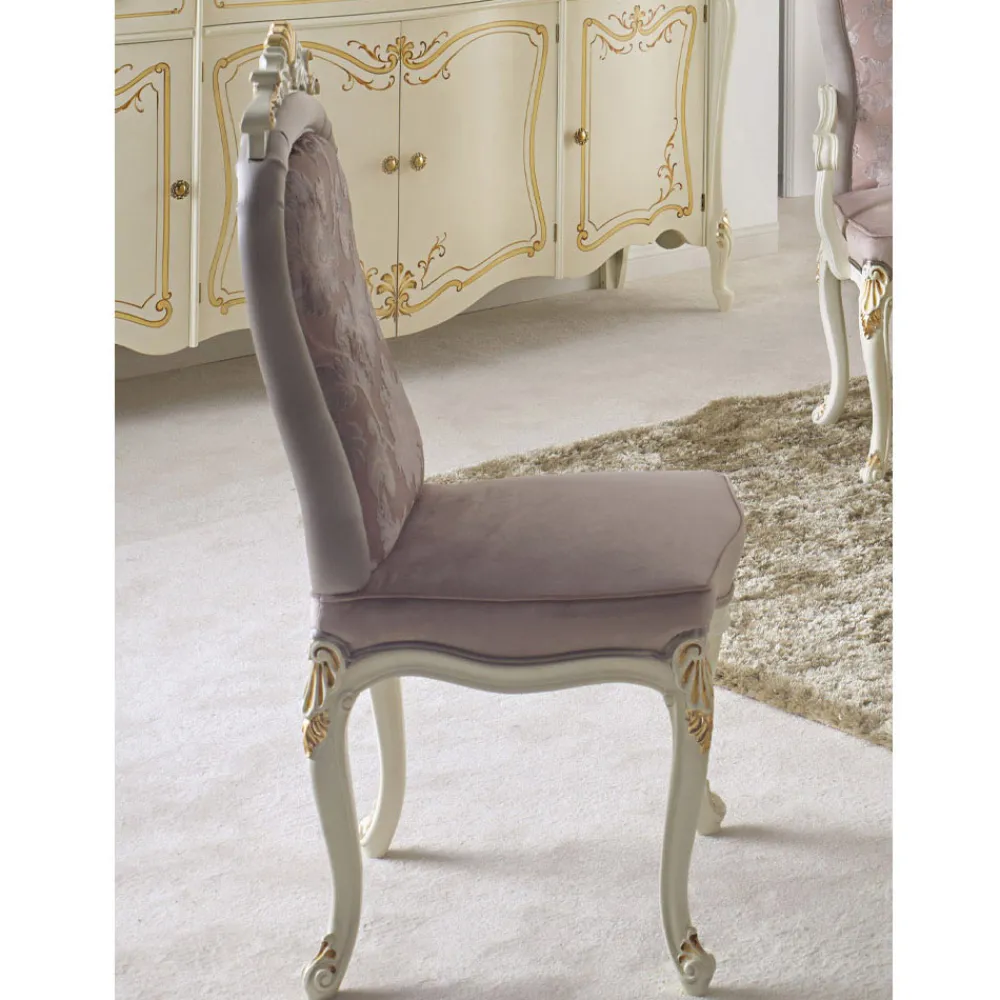 Esszimmerstuhl im zeitlosen klassischen Stil, perfekt, um ein Wohnzimmer, eine Küche oder ein Esszimmer mit Klasse und Eleganz zu dekorieren. Dieser Stuhl hat eine Struktur aus weißem und goldenem Holz, während der Sitz eine gepolsterte Sitzfläche und Rückenlehne hat, die mit Stoff bezogen sind, und eine sehr elegante Abdeckung am Ende der Rückenlehne. Außerdem kann zwischen der Version mit oder ohne Armlehnen gewählt werden. Eine einzigartige und raffinierte Ergänzung, die vollständig in Italien von erfahrenen Handwerksmeistern hergestellt wird, Meister der Kunst, die jede Ergänzung mit Weisheit und Geschmack für Eleganz vervollständigen. Die Produktion erfolgt unter Verwendung hochwertiger Materialien und mit der größten Sorgfalt und Professionalität, die die Produkte Made in Italy auszeichnet .