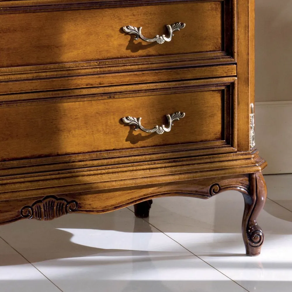 Klassische Kommode , ideal für die Einrichtung des Schlafbereichs mit Eleganz und Raffinesse, aus Bassano-Nussbaum und vervollständigt durch 4 geräumige und praktische Schubladen. Einzigartig und raffiniert, vollständig in Italien hergestellt und von erfahrenen Handwerksmeistern handgefertigt, vollendet mit Weisheit und Geschmack für Eleganz. Die Produktion erfolgt unter Verwendung hochwertiger Materialien und mit der größten Sorgfalt und Professionalität, die die Produkte Made in Italy auszeichnet .