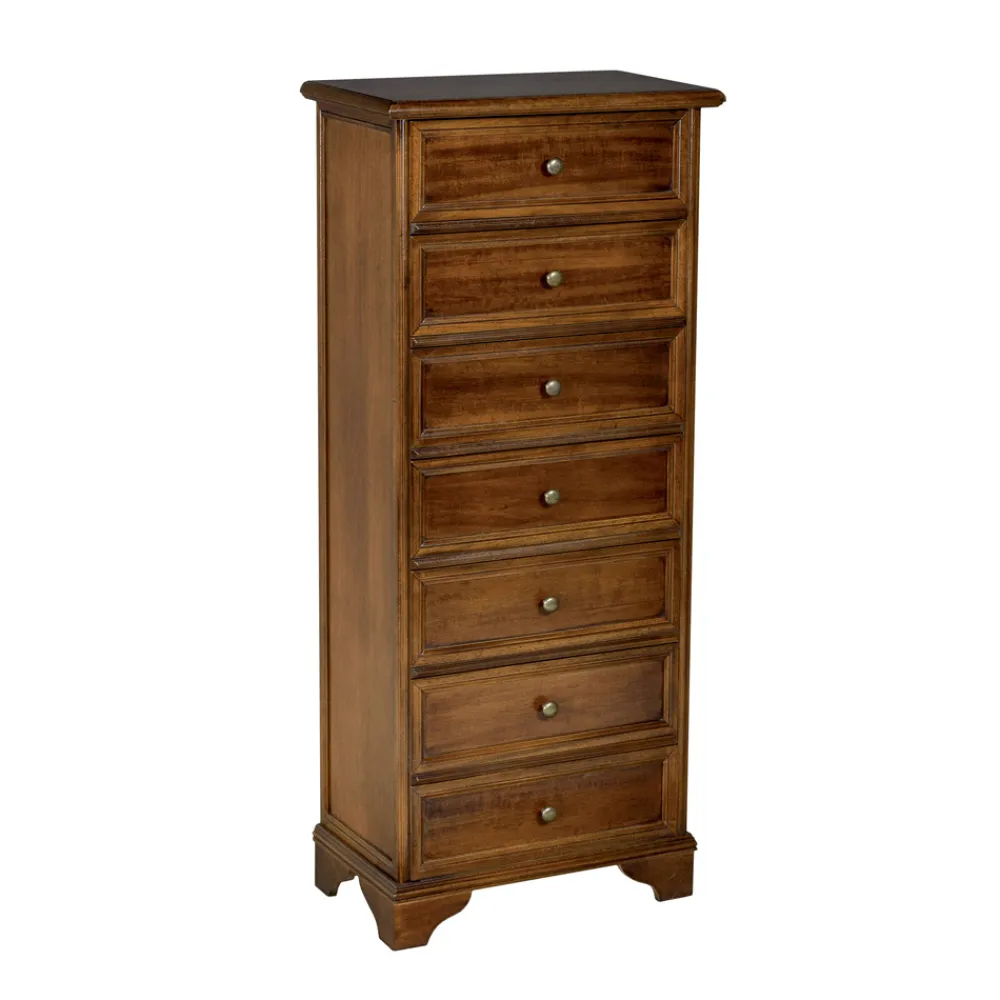 Kommode mit Massivholzrahmen , Tanganjika-furnierten Holzpartikelplatten , Ayous- Rahmen, Beinen aus Birkensperrholz , Böden aus MDF und Sperrholz mit 7 Schubladen, komplett in Italien hergestellt.