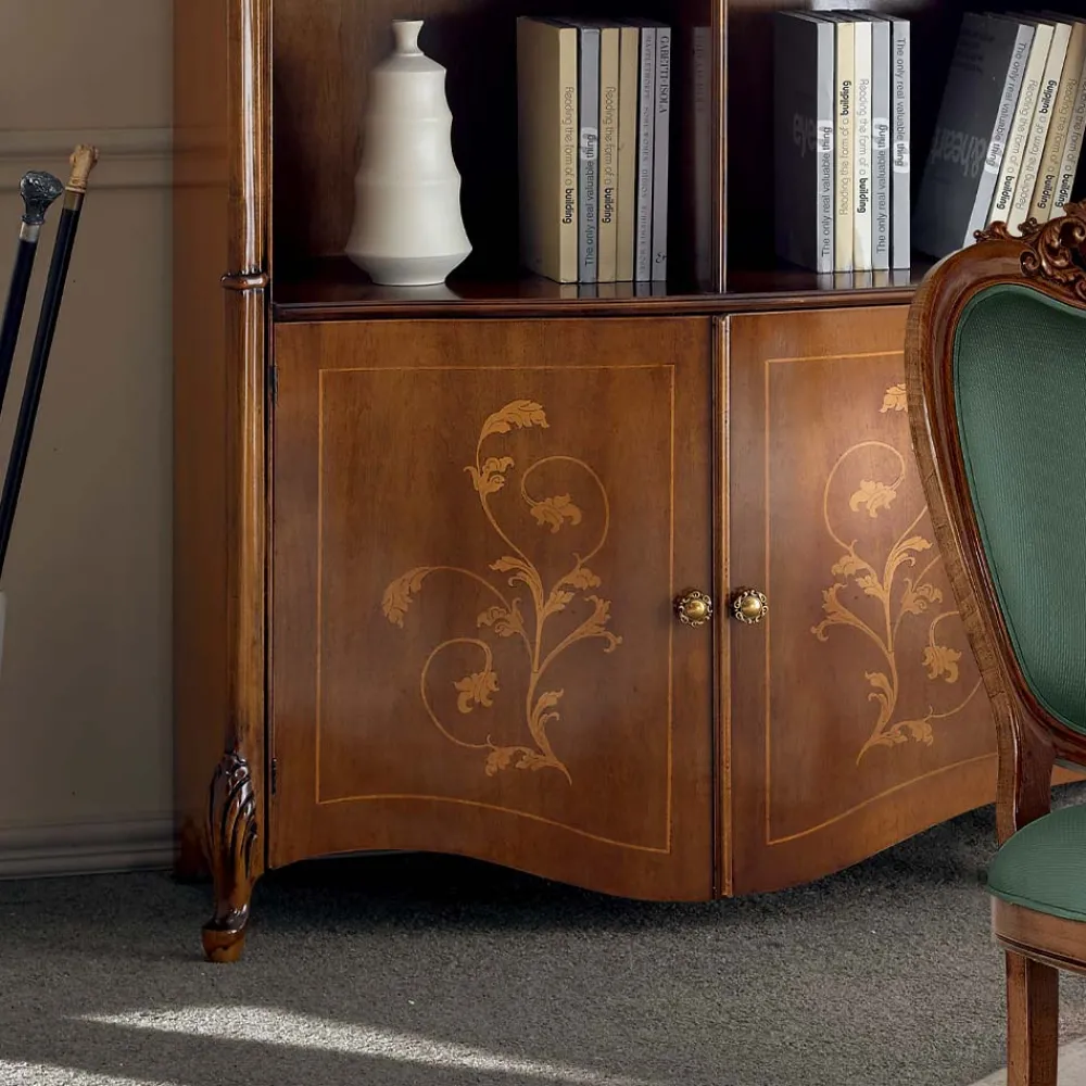 Elegantes Bücherregal im klassischen Stil aus eingelegtem Bassano-Walnussholz . Dieses Bücherregal hat 8 praktische Fächer und zwei Türen, die alle von der originalen Abdeckung gekrönt werden. Eine einzigartige und raffinierte Ergänzung, die vollständig in Italien von erfahrenen Handwerksmeistern hergestellt wird, Meister der Kunst, die jede Ergänzung mit Weisheit und Geschmack für Eleganz vervollständigen. Die Produktion erfolgt unter Verwendung hochwertiger Materialien und mit der größten Sorgfalt und Professionalität, die die Produkte Made in Italy auszeichnet .