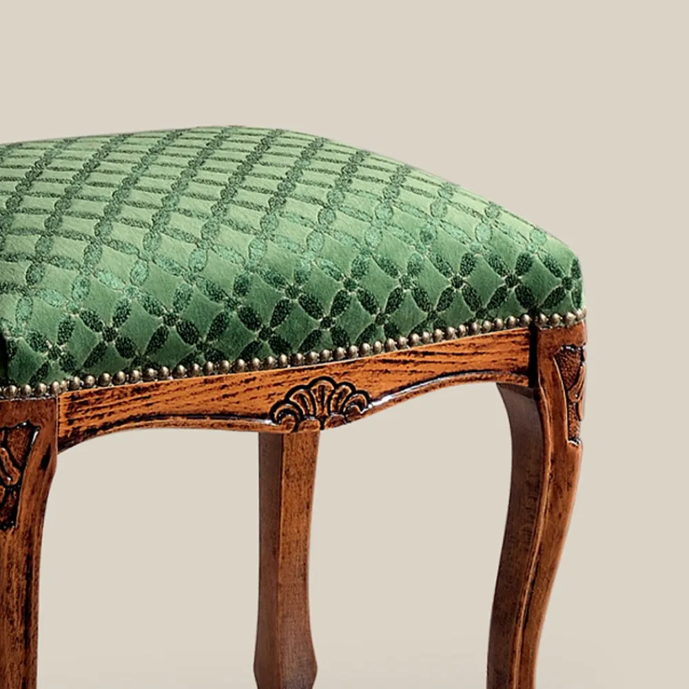 Hocker im klassischen Stil aus Walnussholz und Stoff Made in Italy.