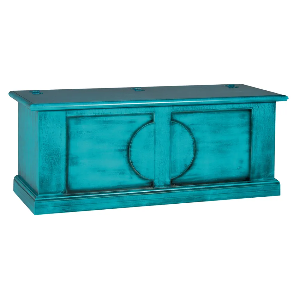 Truhe mit Struktur aus furnierten Holzpartikeln aus Tanganjika/Toulipier , Rahmen aus Toulipier/Ayous , Boden und Rückenlehne aus MDF und Sperrholz, vollständig in Italien hergestellt.