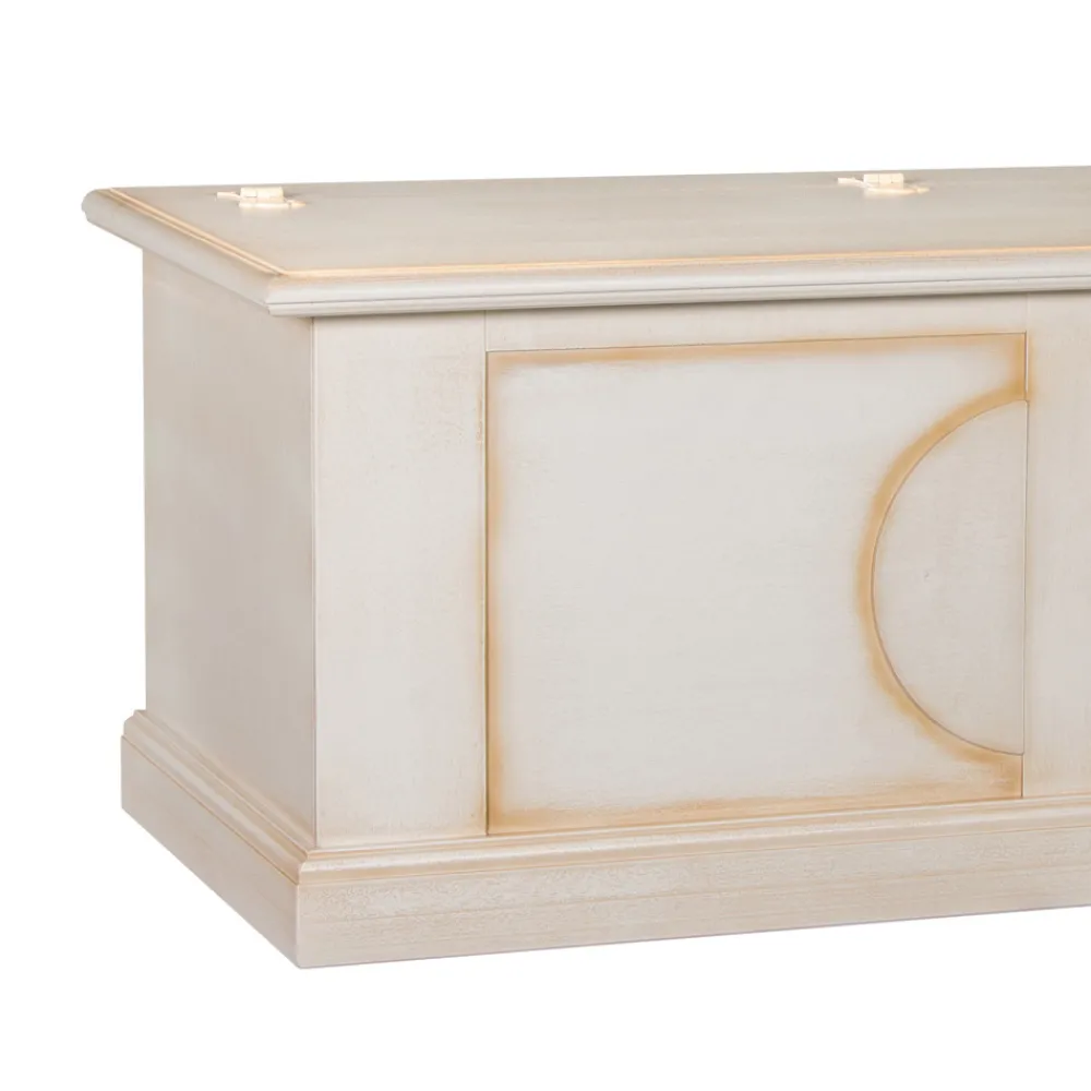 VORSICHTSMASSNAHMEN: Da Holz ein lebendiges und feuchtigkeitsempfindliches Material ist, muss besonders darauf geachtet werden, die Möbel in Häusern aufzustellen, deren Putz mindestens einen Monat lang ausgeruht und trocken war. Wir empfehlen jedoch, für einige Monate einen Abstand von mindestens 5 Zentimetern zur Wand zu lassen und die Räume häufig zu lüften.