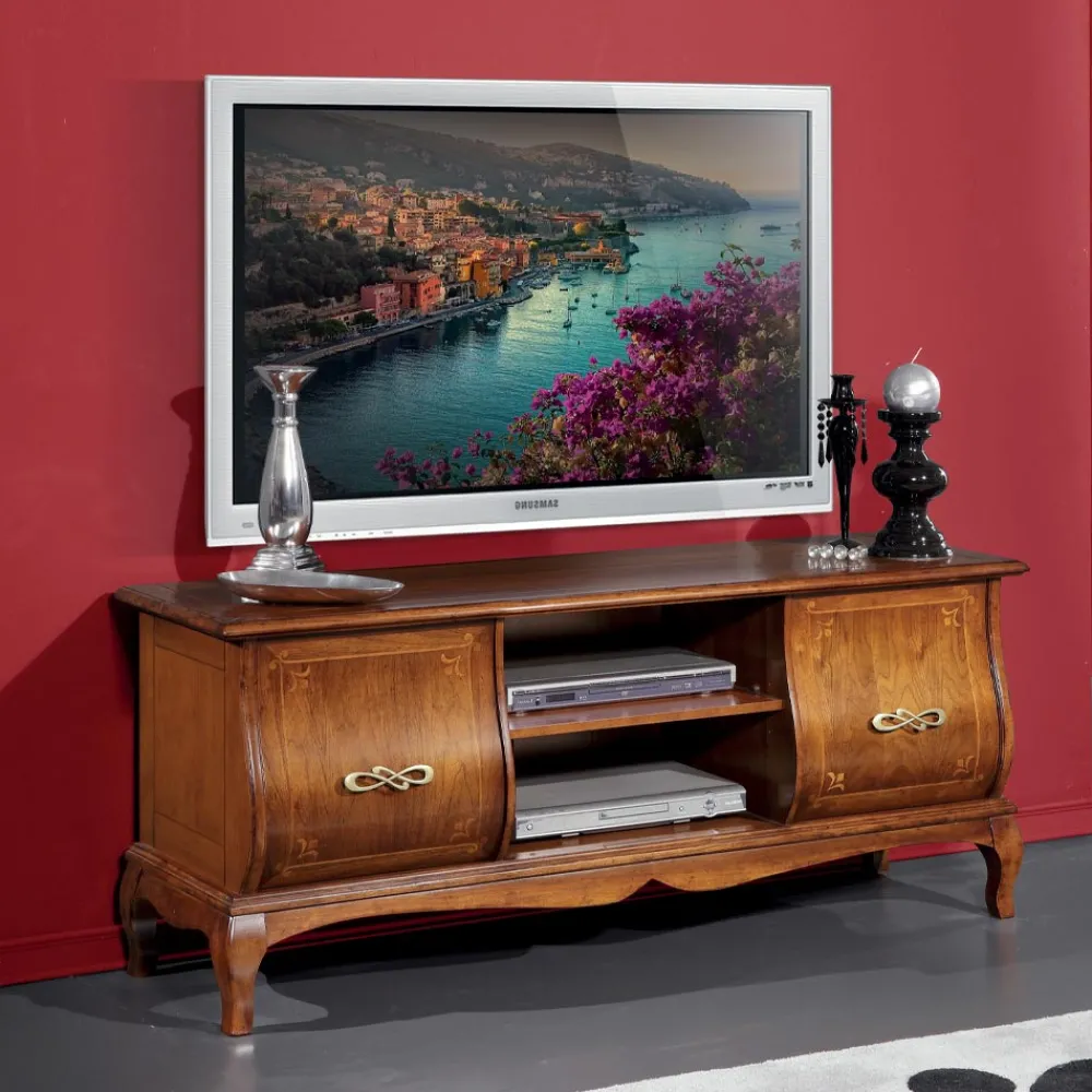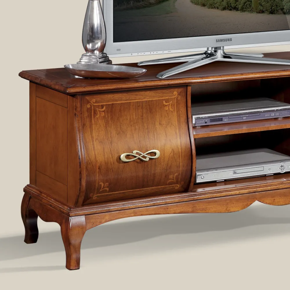 Klassischer TV-Schrank aus Holz mit Intarsien Made in Italy.