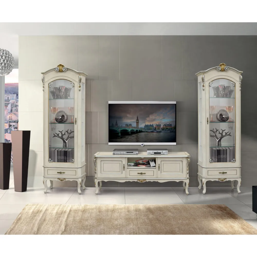 Luxus -Wohnvitrine im klassischen Stil aus edlem weißem Holz mit Tür und praktischer Schublade, erhältlich in der Version mit nach rechts oder links öffnender Tür, anpassbar an jeden Einrichtungsbedarf. Elegant und zeitlos ist diese Vitrine im klassischen Stil ideal, um beeindruckende Umgebungen zu schaffen. Vollständig in Italien hergestellt und von erfahrenen Handwerksmeistern handgefertigt, vollendet mit Weisheit und Geschmack für Eleganz. Die Produktion erfolgt unter Verwendung hochwertiger Materialien und mit der größten Sorgfalt und Professionalität, die die Produkte Made in Italy auszeichnet .