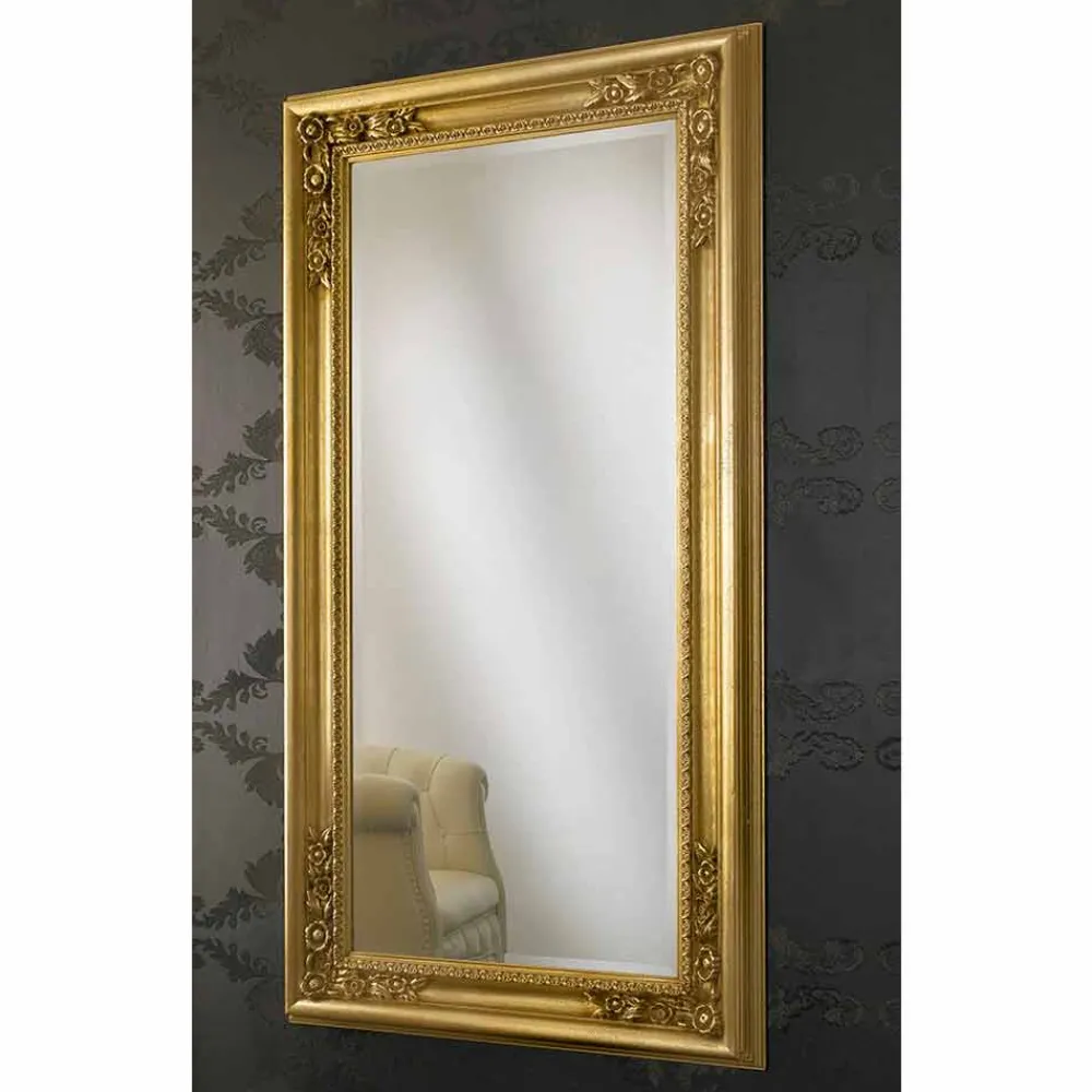 Dieser Spiegel mit seinem eleganten Rahmen ist eine Hommage an den raffinierten klassischen Stil . Jeder Zentimeter des Rahmens ist mit zarten Blumendetails und Ornamentmotiven verziert, die fachmännisch eingraviert sind, um ein Spiel aus Licht und Schatten zu erzeugen, das Aufmerksamkeit erregt und einen Hauch von Königlichkeit verleiht.