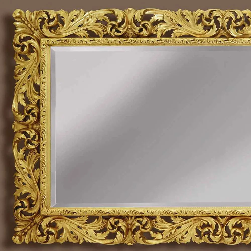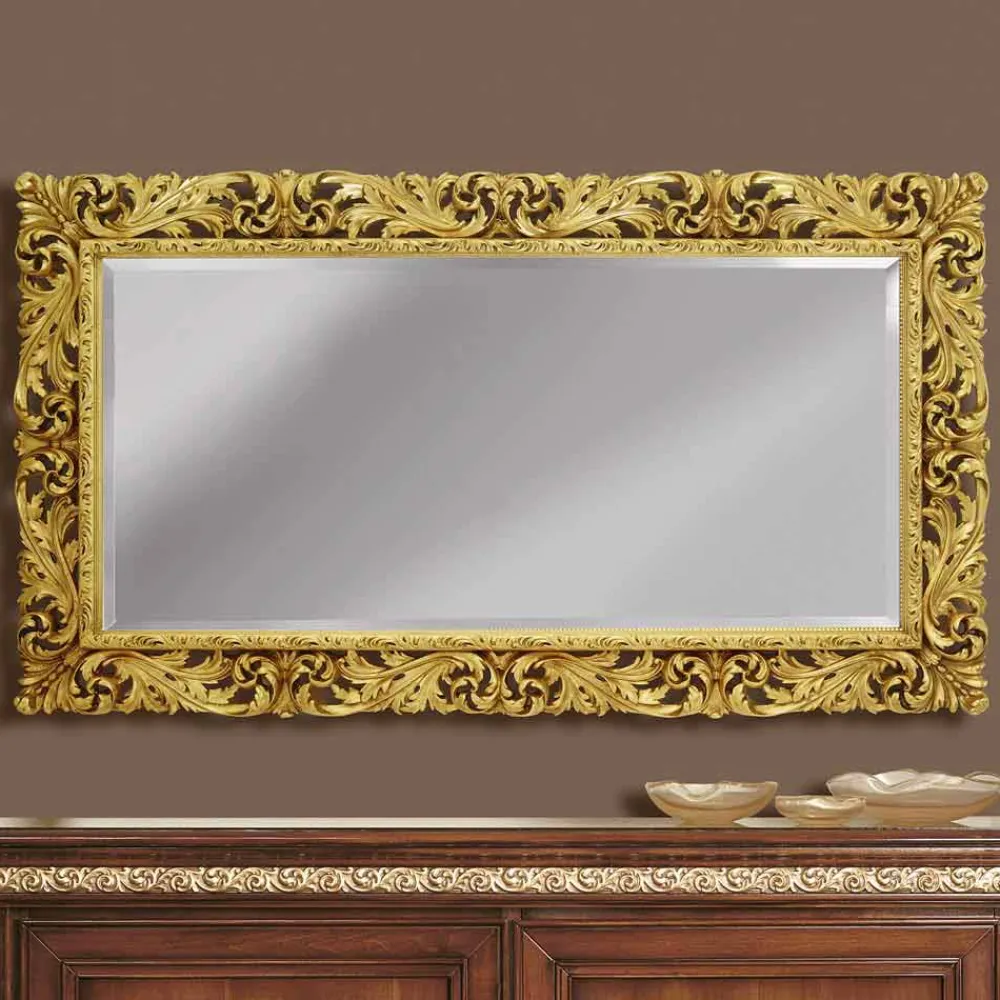 Dieser beeindruckende Spiegel ist ein Meisterwerk der Handwerkskunst , das die Pracht des Barockstils zelebriert. Der Rahmen besteht aus einem komplizierten Geflecht aus Akanthusblatt- und Blumenmotiven, die jeweils sorgfältig gemeißelt sind, um einen dreidimensionalen Effekt zu erzeugen, der sowohl haptisch als auch optisch atemberaubend ist.