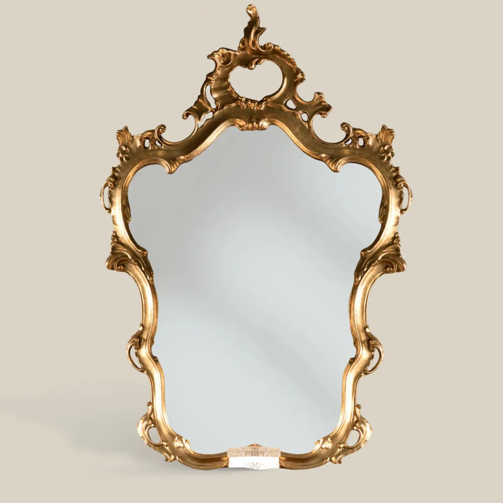 Spiegel im klassischen Stil mit geformtem Rahmen, der mit Blattgold veredelt ist, ideal, um jede Umgebung mit Persönlichkeit und Originalität zu dekorieren. Eine einzigartige und raffinierte Ergänzung, die vollständig in Italien von erfahrenen Handwerksmeistern hergestellt wird, Meister der Kunst, die jede Ergänzung mit Weisheit und Geschmack für Eleganz vervollständigen. Die Produktion erfolgt unter Verwendung hochwertiger Materialien und mit der größten Sorgfalt und Professionalität, die die Produkte Made in Italy auszeichnet .