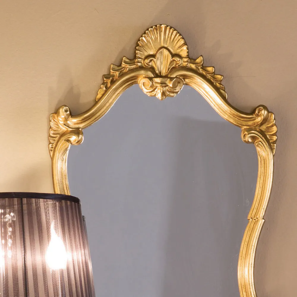Raffinierter Spiegel im klassischen und barocken Stil mit geformtem Rahmen, der mit elegantem Blattgold veredelt ist, ideal, um jede Umgebung mit Persönlichkeit und Originalität zu dekorieren. Eine einzigartige und raffinierte Ergänzung, vollständig in Italien hergestellt und von erfahrenen Handwerksmeistern handgefertigt, Meister der Kunst, die jede Ergänzung mit Weisheit und Geschmack für Eleganz vervollständigen. Die Produktion erfolgt unter Verwendung hochwertiger Materialien und mit der größten Sorgfalt und Professionalität, die die Produkte Made in Italy auszeichnet .