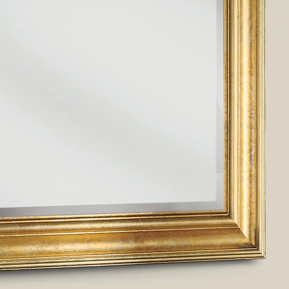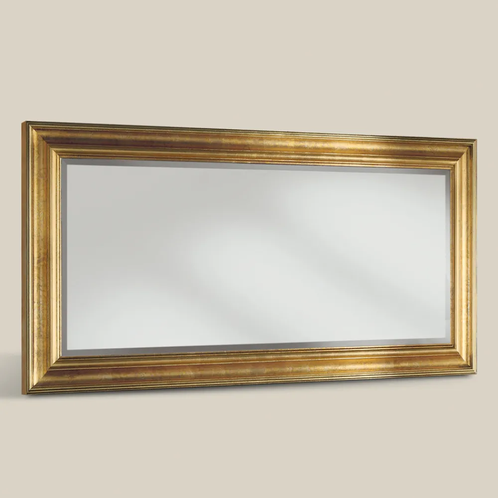 Rechteckiger Spiegel mit Holzrahmen, verziert mit Blattgold im klassischen Stil, ideal, um jedem Raum eine elegante und luxuriöse Note zu verleihen.