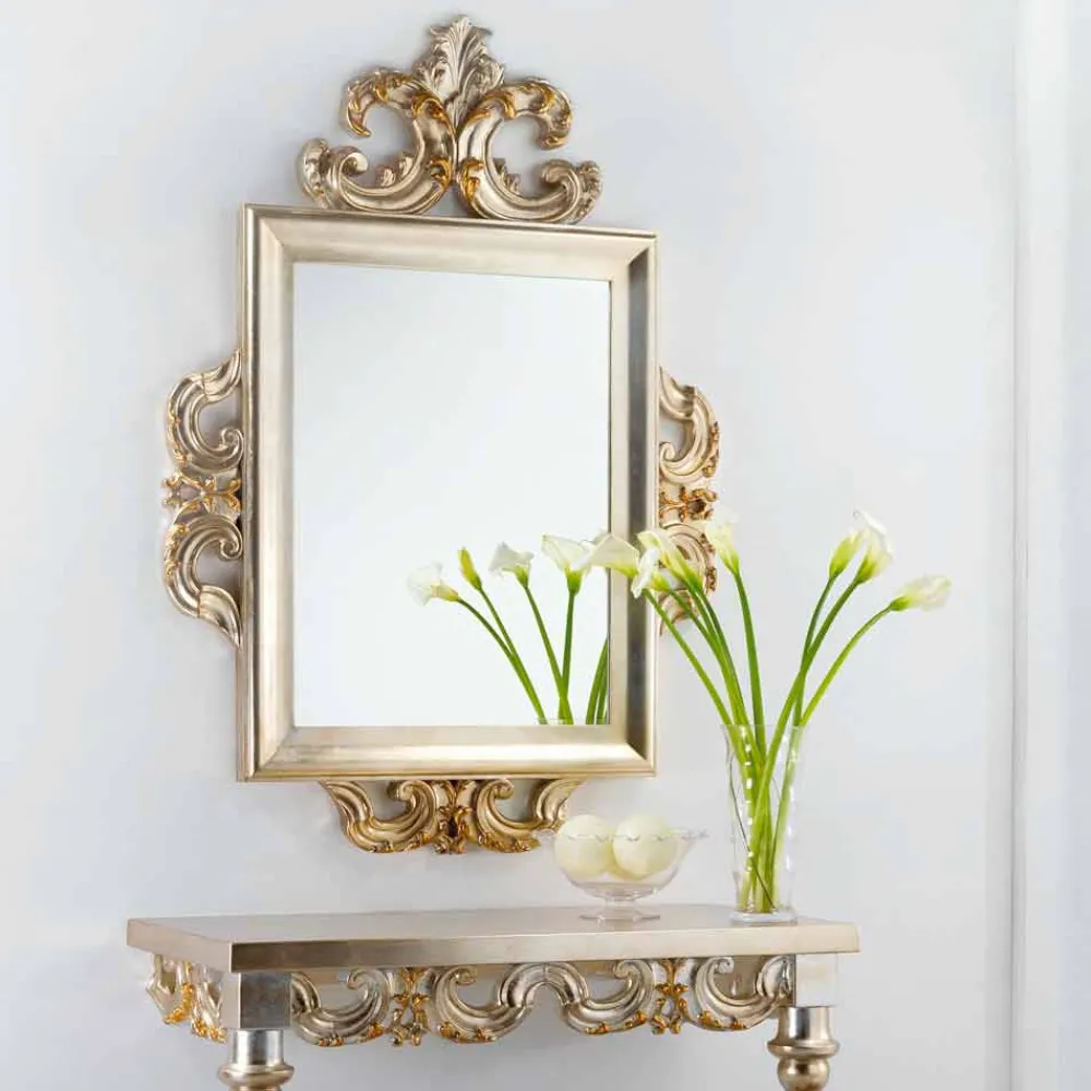 Stilmix Barock und Moderne! Ein moderner farbenfroher Einrichtungsstil im Luis XVI Barock Design. In diesem Stil finden Sie barocke Formen mit glamourösen Accessoires, die mit vielen Ornamenten und Schnitzereien verziert sind. Hier hat sich eine Modeströmung etabliert, die sich nicht nur dem heutigen Trend anpasst, sondern gleichzeitig die Apokalypse und den Erfolg der Renaissance grafisch mit einfliessen lässt. Der Wand und Standspiegel Guy ist ein in Handarbeit gefertigtes Produkt, welches mit viel Liebe zum Detail, Professionalität und einer jahrelangen Praxiserfahrung hergestellt wurde. Die haargenaue Orientierung an antiken Vorbildern sorgt für das nötige Maß an Authentität. Eine Mischung aus antikem Anspruch, Luxus und Verzauberung der Sinne.