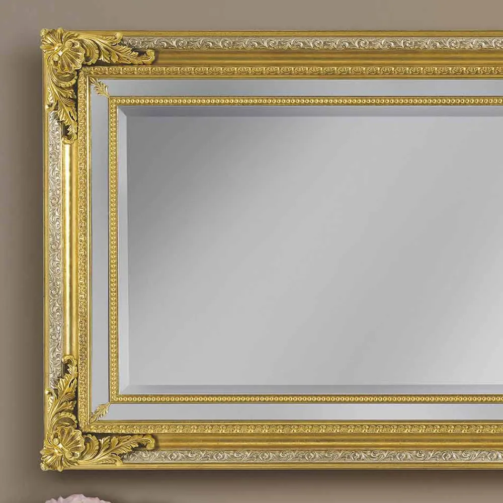Dieser elegante Spiegel ist ein leuchtendes Beispiel für Schönheit und Handwerkskunst. Der Rahmen ist ein Triumph des klassischen Designs, angereichert mit aufwendigen Details und Friesen, die das Licht und den Charme der Barockzeit einfangen. Jede Ecke ist mit floralen Ornamenten und üppigen Motiven verziert, die zu einem Rahmen purer Pracht verschmelzen.