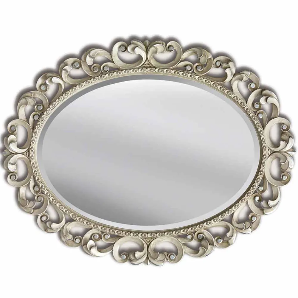Ovaler Spiegel aus Geloton-Holz mit handgefertigtem Blatt, passend zur Eleganz Ihres Wohnzimmers.
