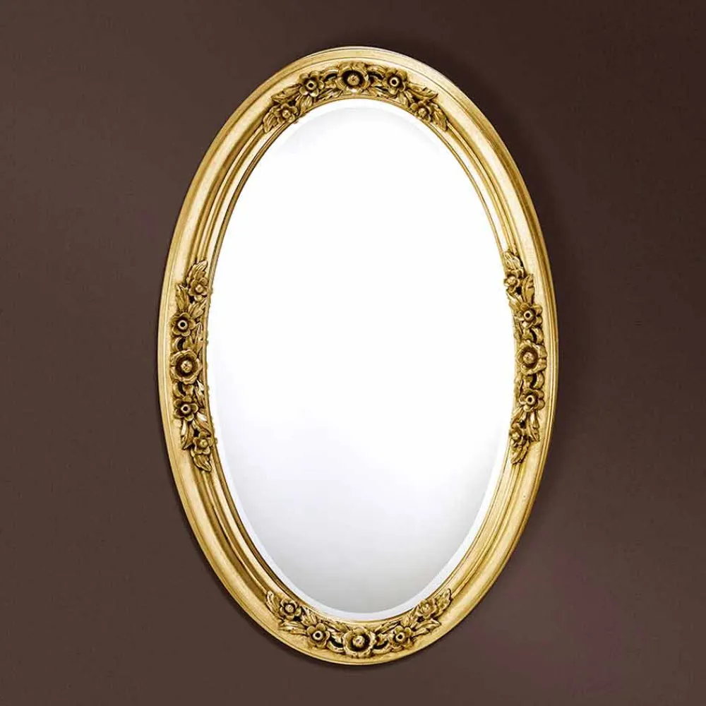 Dieser ovale Spiegel ist ein Beispiel traditioneller Eleganz , die den Charme prächtiger historischer Innenräume mit sich bringt. Der Rahmen ist kunstvoll mit floralen Verzierungen und Rokoko-Akzenten gefertigt , jedes Detail ist aufwendig geschnitzt, um eine Aura von Reichtum und klassischem Charme zu schaffen.