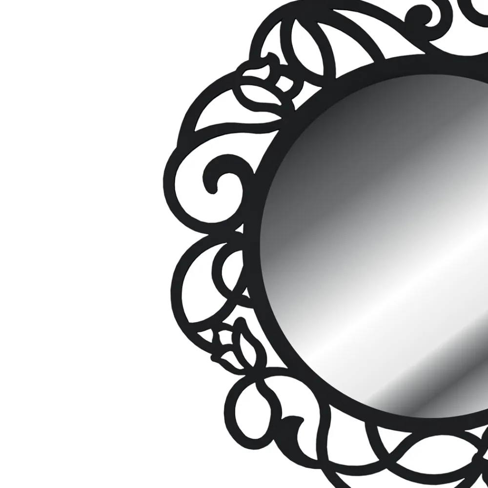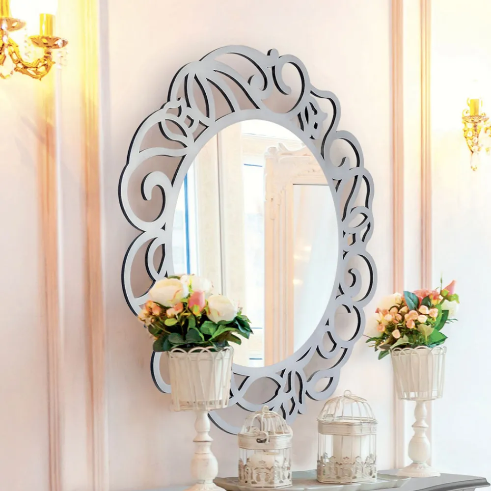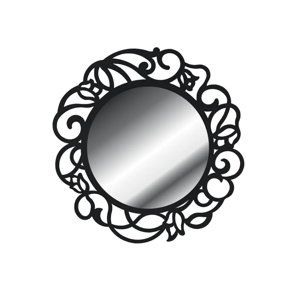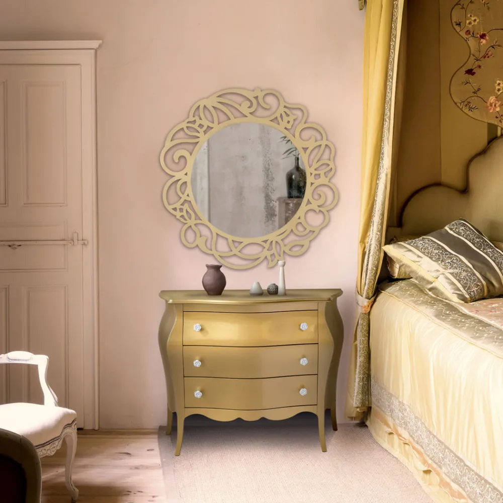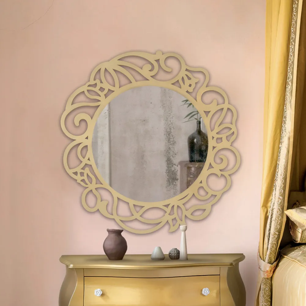 Runder Spiegel mit perforierter Dekoration aus Zellstoff und Holzrahmen, vollständig in Italien hergestellt.
