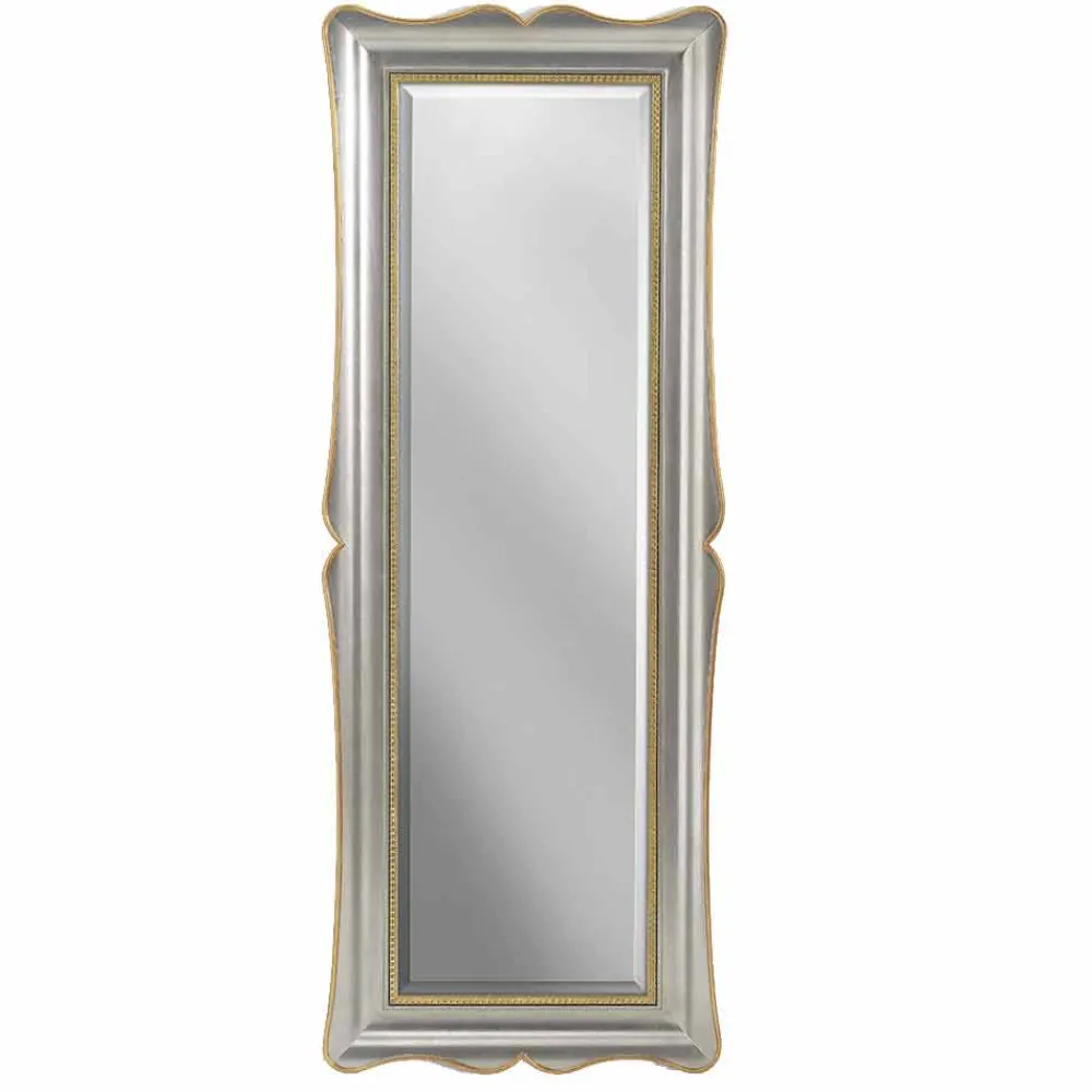 Elfenbeinfarbener, silberner und goldener Wandspiegel aus Holz in Italien