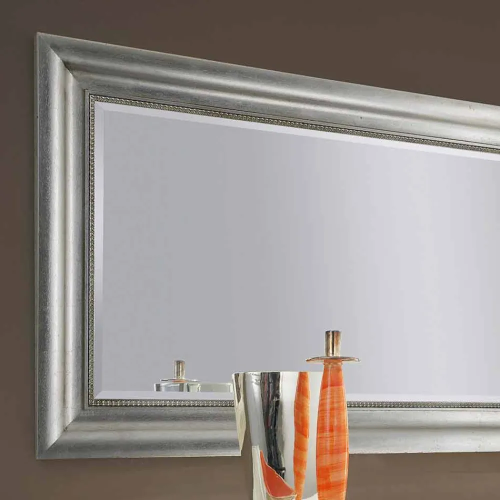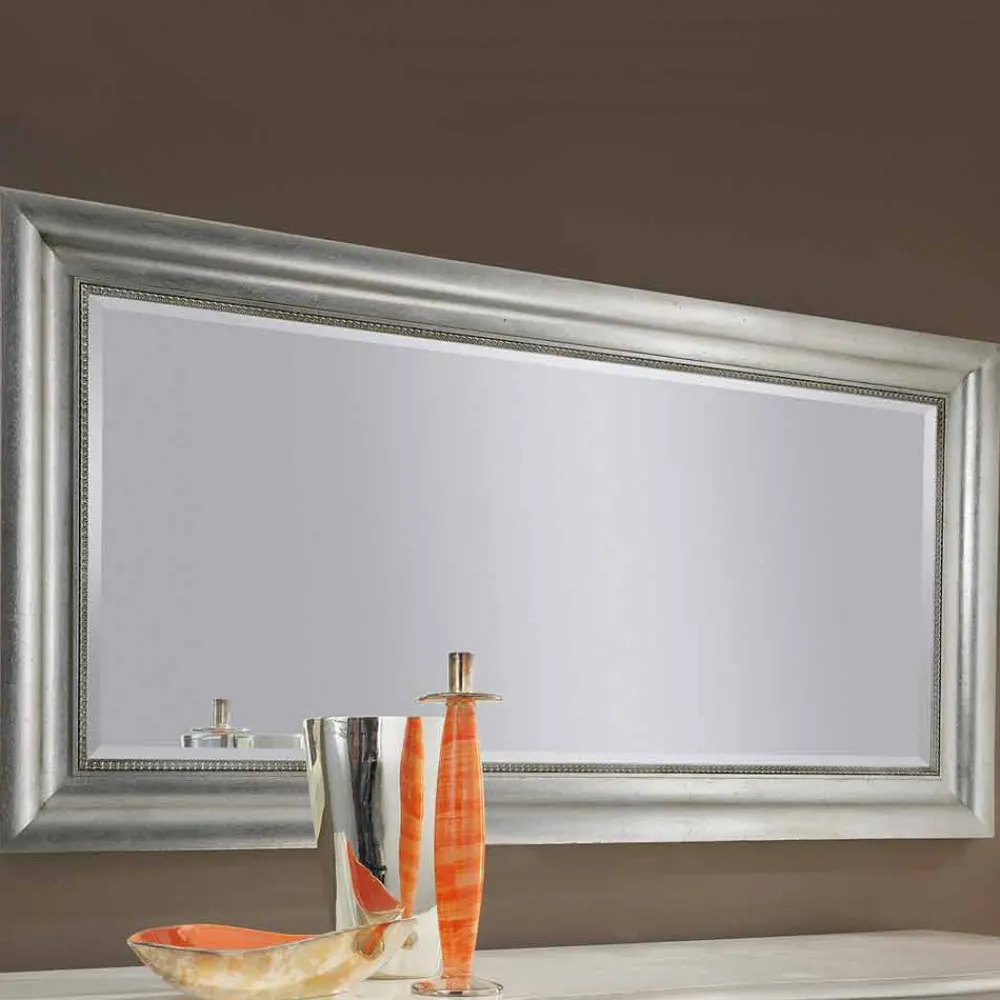 Handgefertigter Wandspiegel aus Gold und Silber aus Holz, hergestellt in Italien