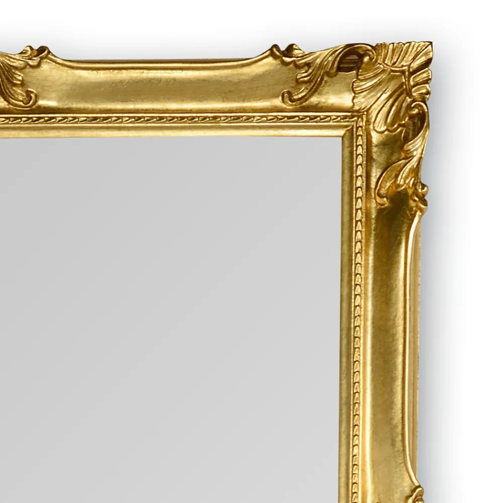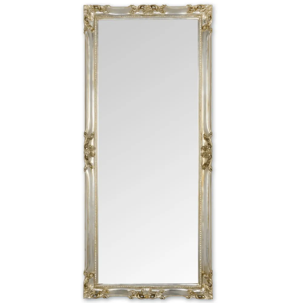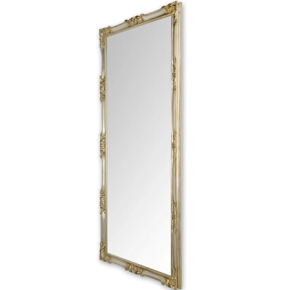 Komplett in Italien hergestellter Wandspiegel aus Kristall mit handgefertigtem Holzrahmen in Blattgold oder Blattsilber. Ein Möbelstück mit einer starken klassischen Persönlichkeit , das durch die wunderbaren Dekorationen, die den gesamten Rahmen charakterisieren, unterstrichen und bereichert wird und der endgültigen Ästhetik des Produkts einen Hauch von raffinierter Eleganz verleiht. Sein raffiniertes Design zusammen mit den wunderbaren vorgeschlagenen Oberflächen machen es zu einer idealen Lösung für die harmonische Einrichtung von Umgebungen im klassischen Stil, die dem Raum Persönlichkeit und Charakter verleiht.