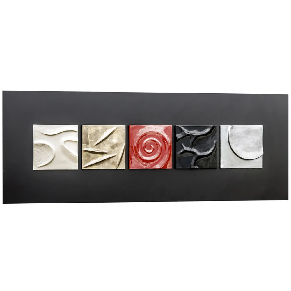 5 Elemente aus Keramik-Verbundstoff , handdekoriert mit Blattsilber und Blei.