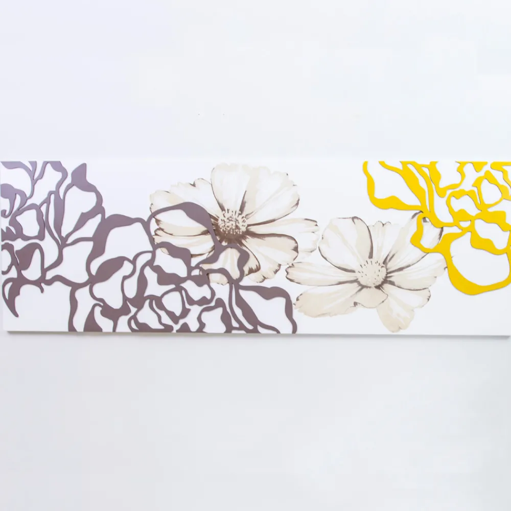 Weiß lackiertes Paneel mit ockerfarbenen und kakaofarbenen Pfingstrosendekorationen, hergestellt in Italien