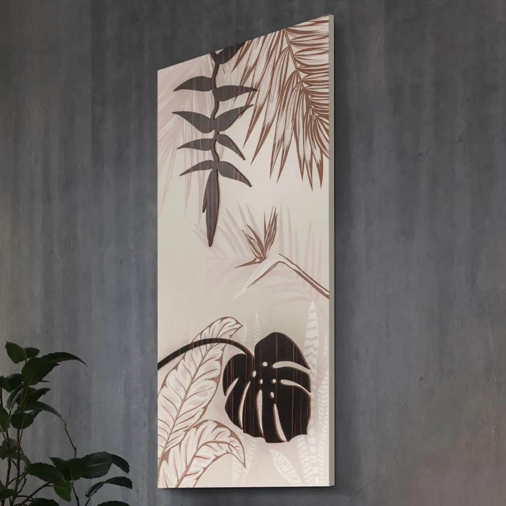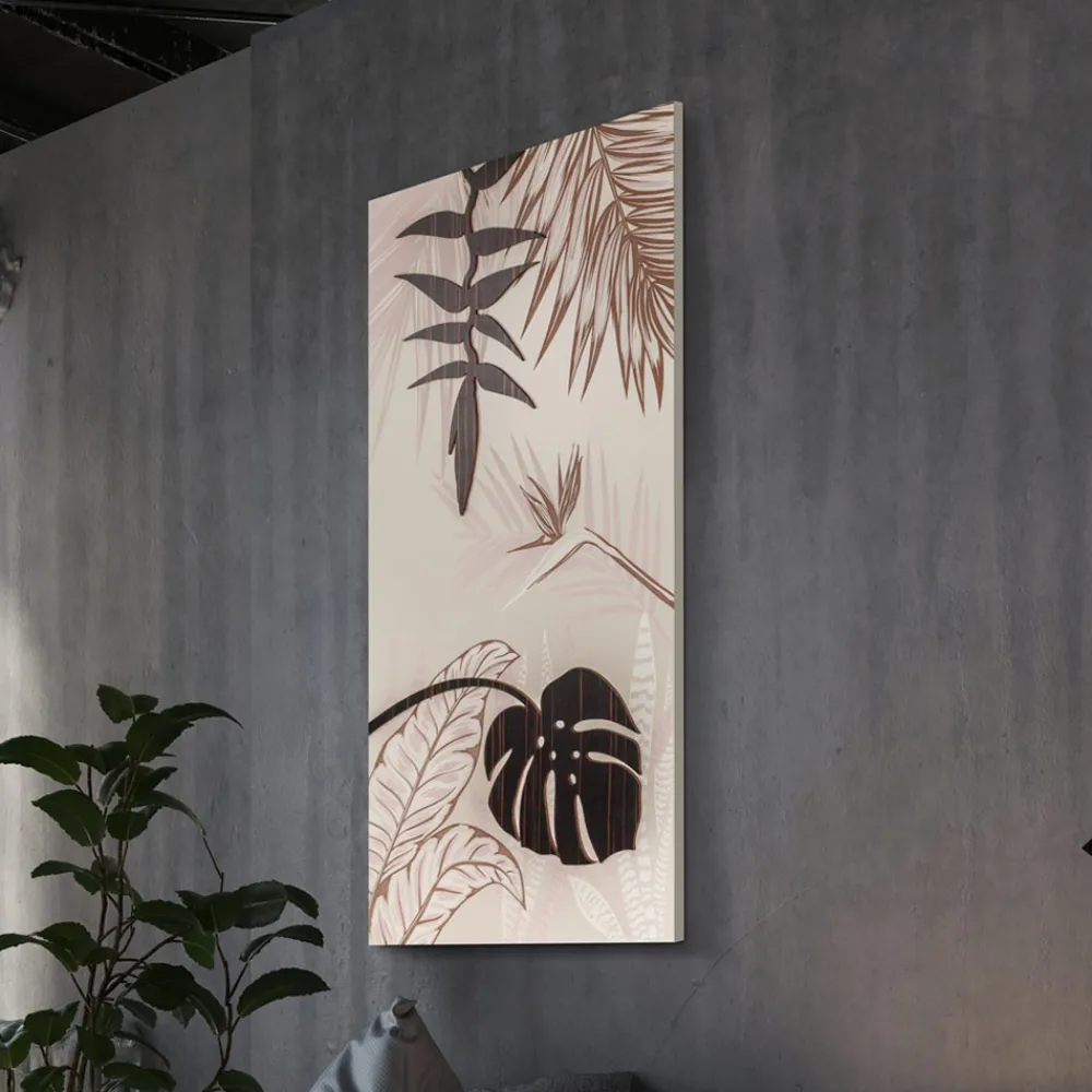 Die Kollektion dieser wunderbaren Paneele schafft einzigartige Atmosphären, die sich jedem Stil und Designanspruch anpassen. Auch die Farbtöne sind vielseitig gestaltet und können sowohl in modernen/urbanen als auch klassisch-schicken Häusern platziert werden. Die hohe Qualität und der Wert dieses Produkts ergeben sich aus den von Hand gezeichneten und anschließend mit dem Licht des Laserstrahls bemalten Figuren, ohne jeglichen Abfall und unter Berücksichtigung der Umwelt.